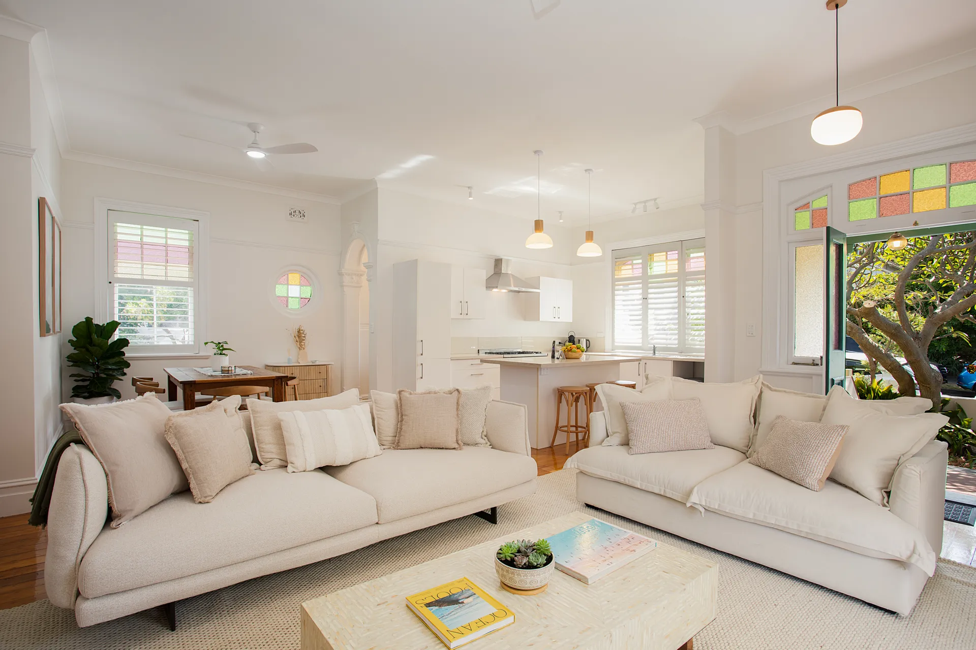 This four-bedroom residence on Glen Street captures the essence of Bondi living, where coastal ease meets modern design. Spread across multiple levels, this sun drenched home combines relaxed beach house charm with modern amenities, offering the perfect base for families and groups seeking laid-back beach vibes. With ocean breezes, flexible sleeping arrangements, and private outdoor spaces, every element has been crafted for the ultimate beachside escape.