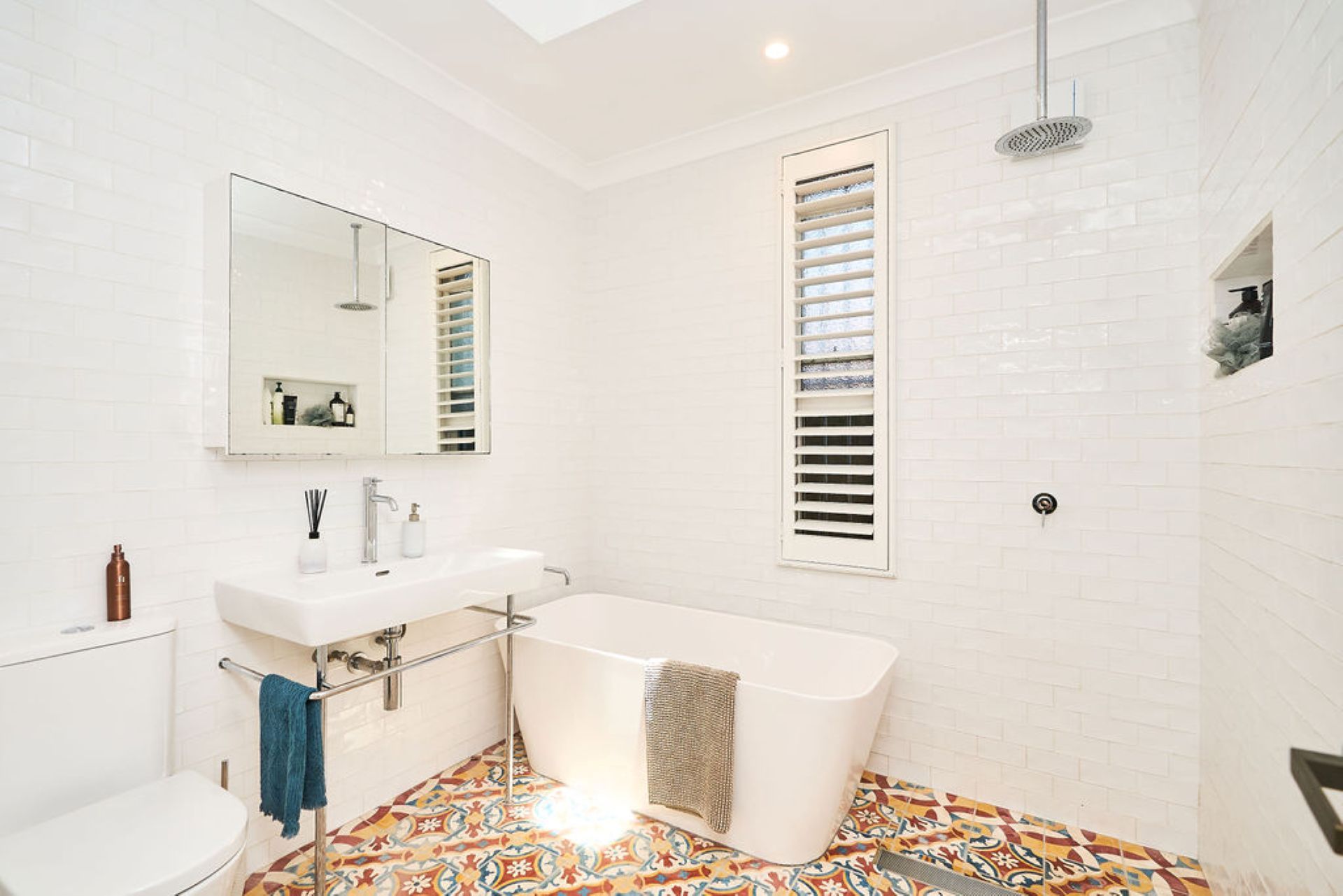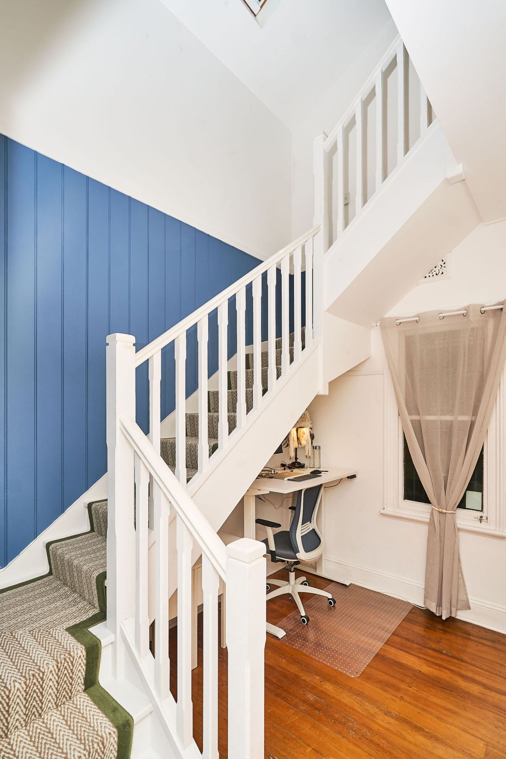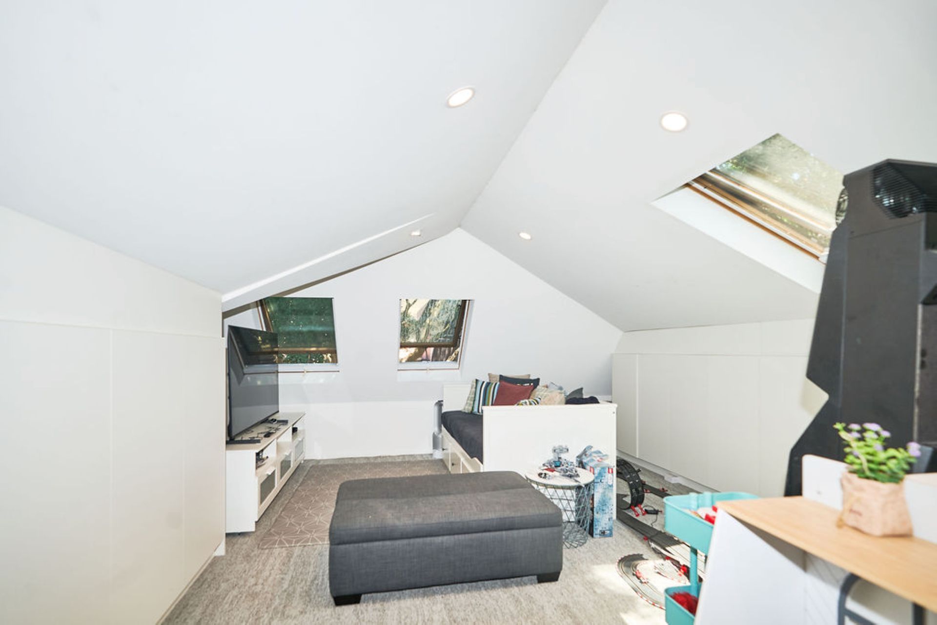 The oversized primary suite offers a private haven, complete with a plush king bed, cushioned bay window and plantation shutters that filter soft natural light. A skylight with motorised blackout adds flexibility, while a walk-in wardrobe leads through to a newly completed ensuite with double vanity and walk-in shower.