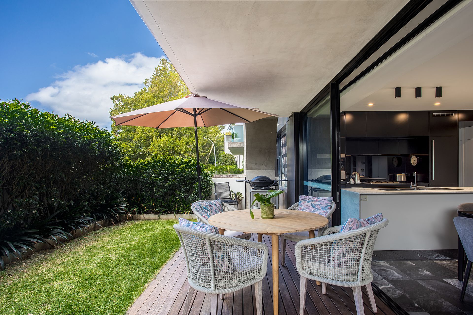 - Lush, private garden courtyard with leafy outlook