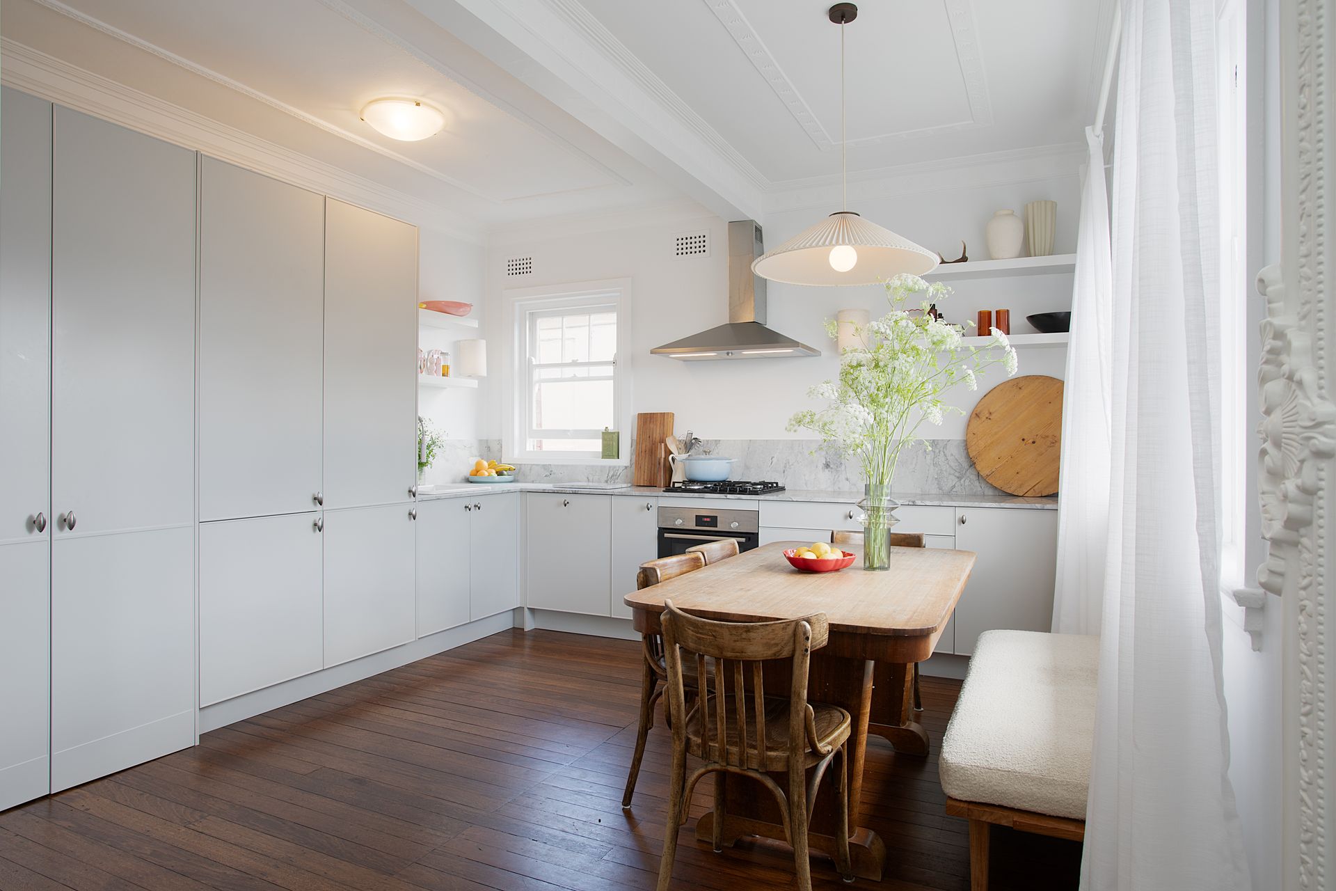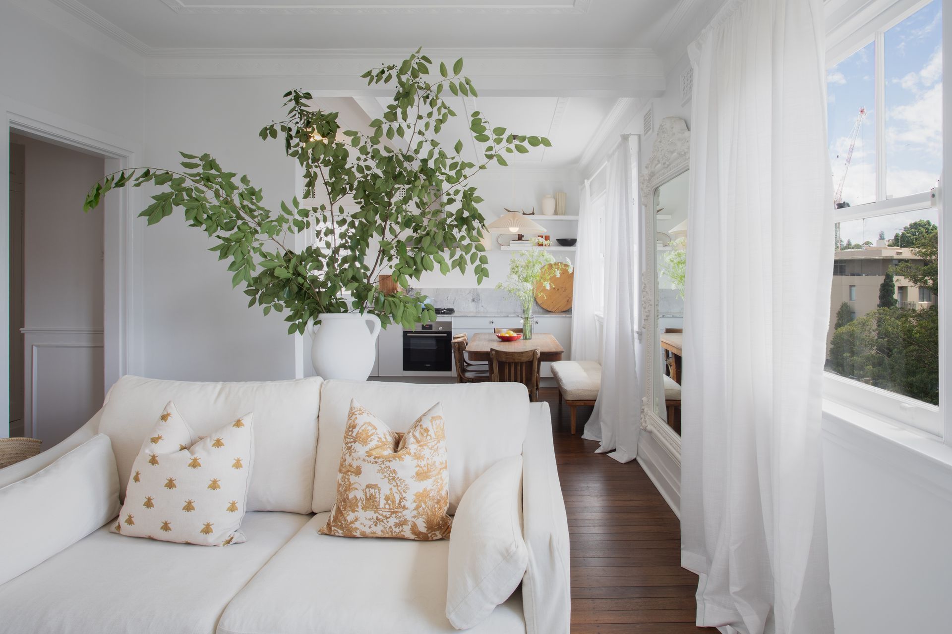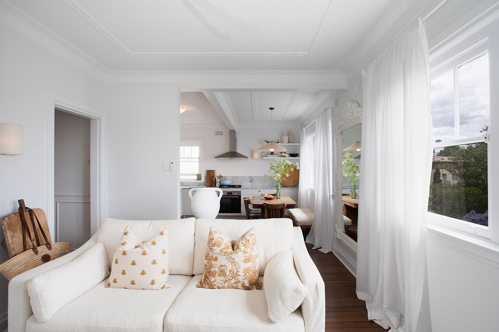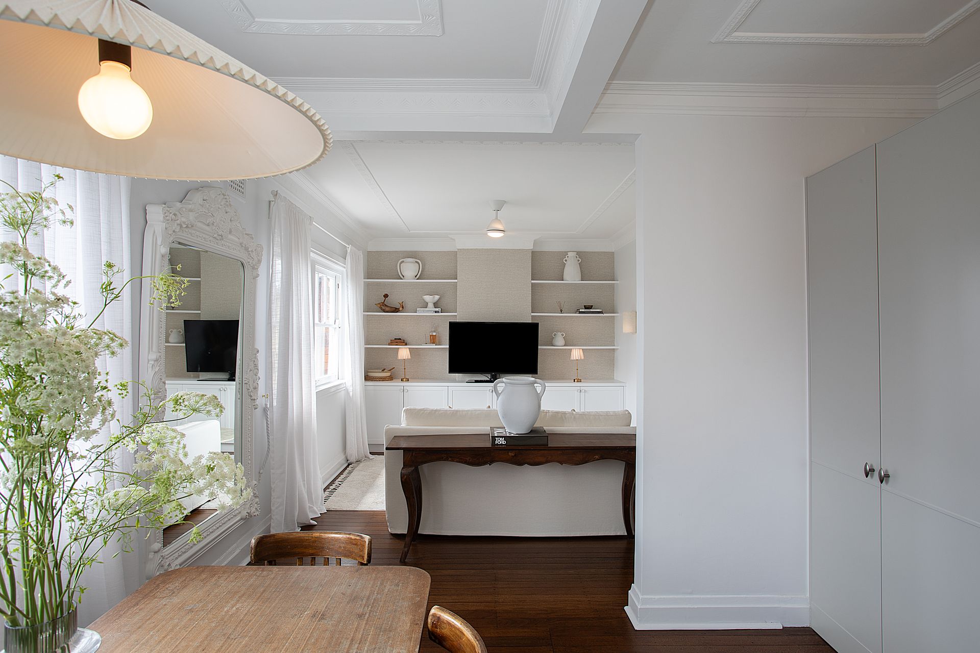 The top floor position delivers those prized harbour views while ensuring privacy and quiet. The building's Art Deco heritage adds character to every corner, from decorative ceiling details to original architectural features. Step inside to discover the open plan living, flowing effortlessly into the kitchen and dining space, where floor to ceiling windows frame uninterrupted harbour views that stretch across the glittering water.
