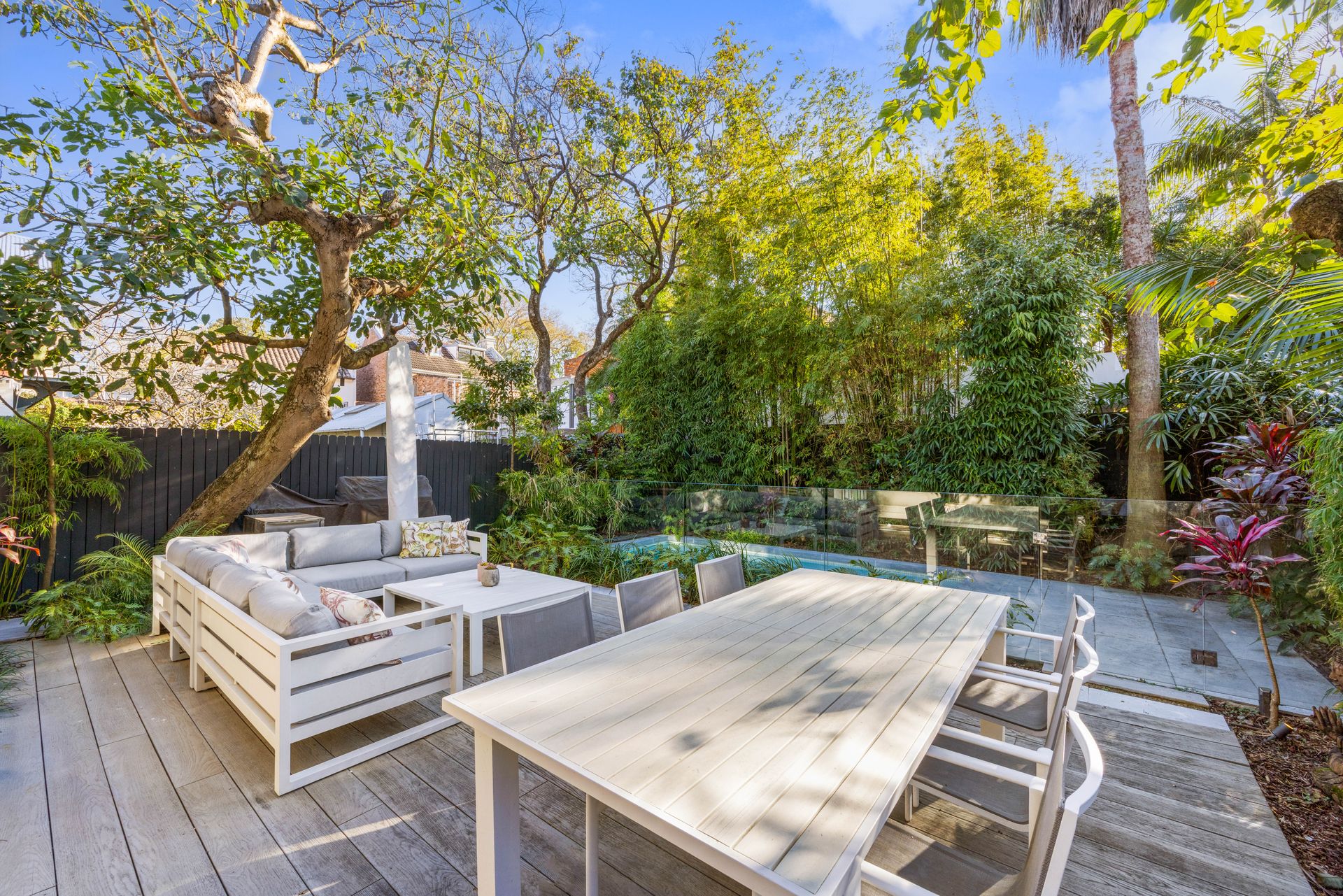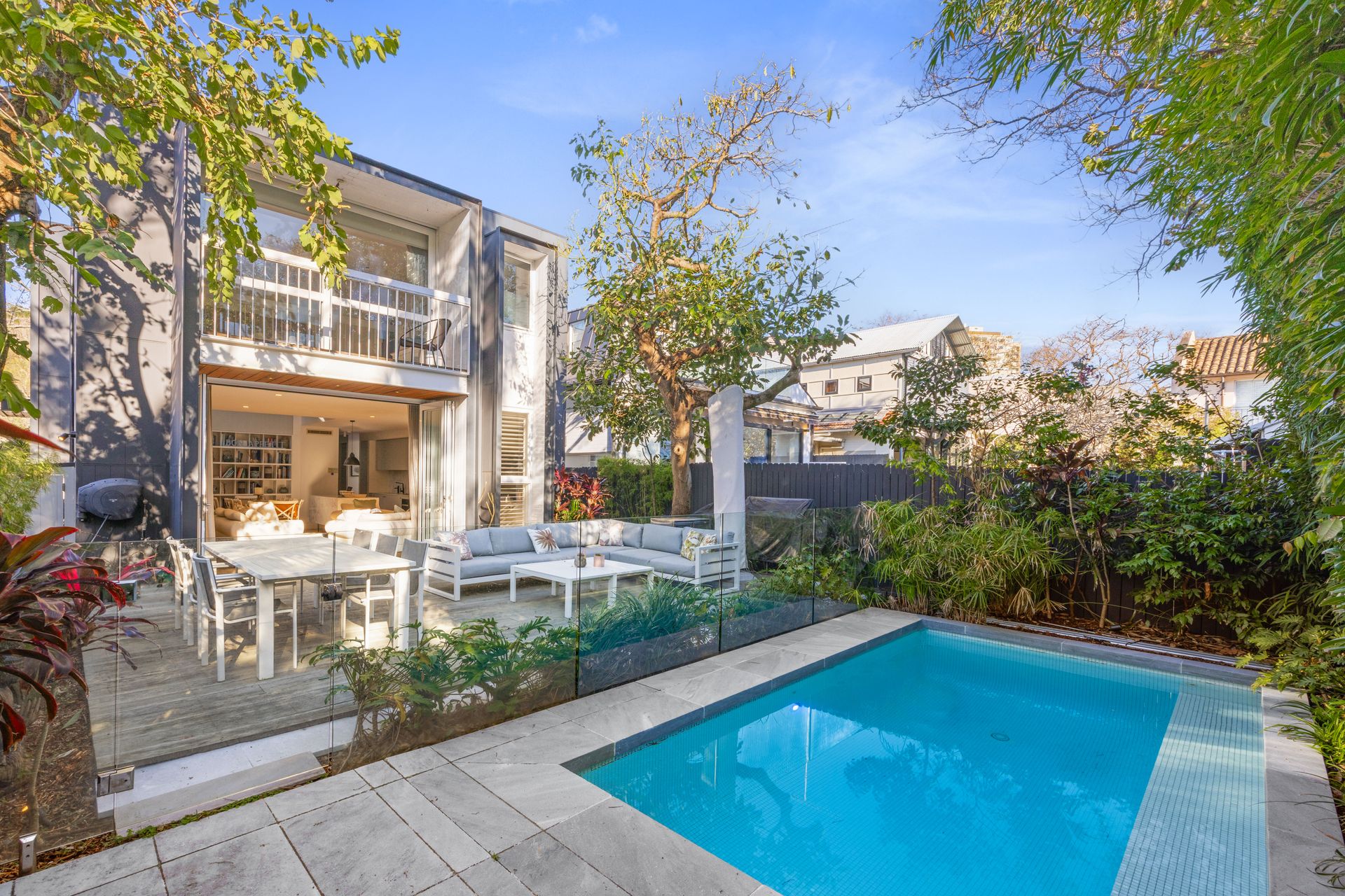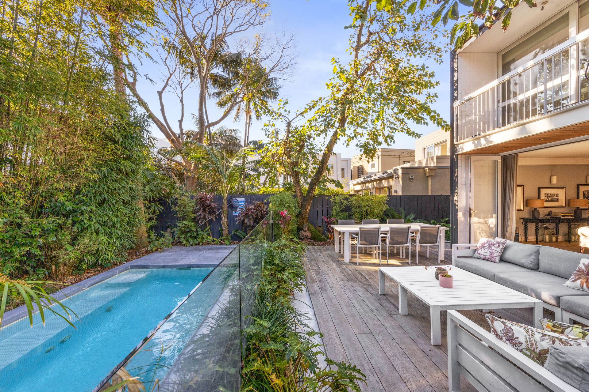 The double-height entertaining space delivers an inviting sense of space and light, the immediate wow factor of this ‘Tribe Studio’ designed home. The heart of the property is the open-plan kitchen diner, where touches of french country decor add charm and warmth to the clean modern space. You’ll have plenty of space to relax, as you’ll also have private access to a deck with a barbeque and al-fresco dining, and a solar-heated pool - your own private oasis. The calm beach-house vibe continues throughout the 4 spacious bedrooms, offering casually sophisticated living. The master suite has a balcony overlooking the garden, which is the perfect place to enjoy a morning coffee. If you’re planning on staying for longer (and why wouldn’t you) there is private parking in a secure garage.