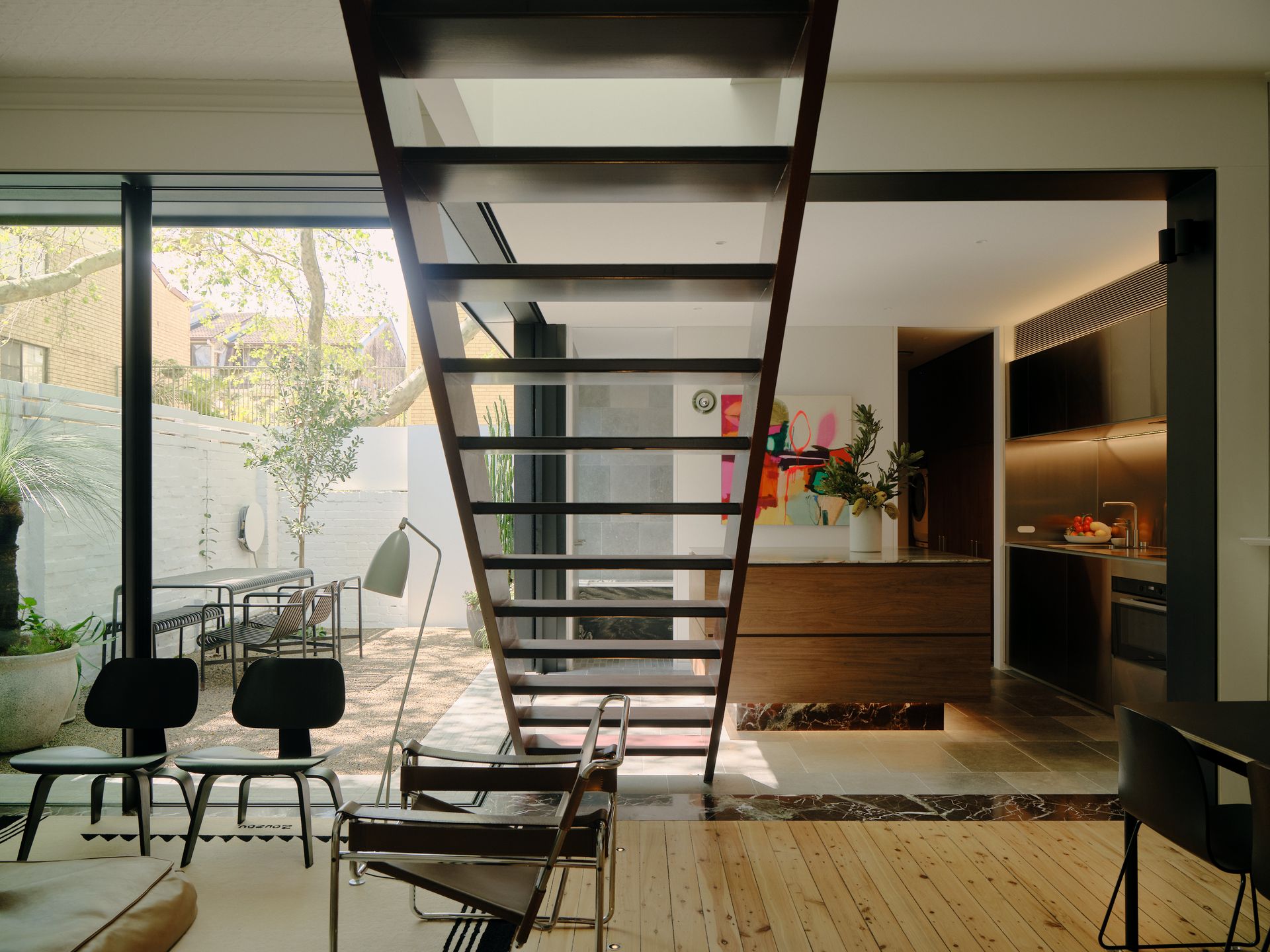 Nestled on a quiet Surry Hills street, this newly renovated four-bedroom terrace represents the pinnacle of contemporary urban living. The home's striking staircase serves as a sculptural centrepiece, connecting light filled living spaces across two beautifully designed levels. With its seamless integration of indoor and outdoor areas, this residence provides an ideal base for families or groups seeking both style and substance in one of Sydney's most vibrant inner city neighbourhoods.