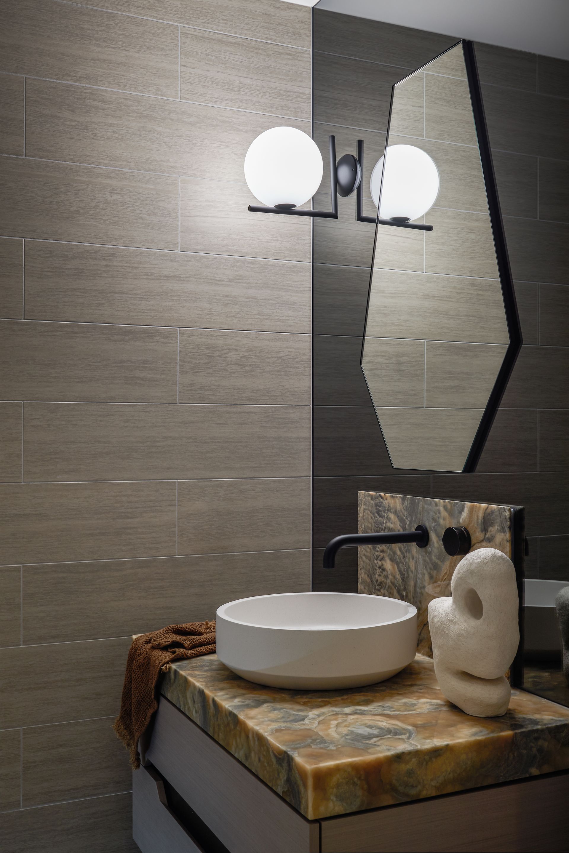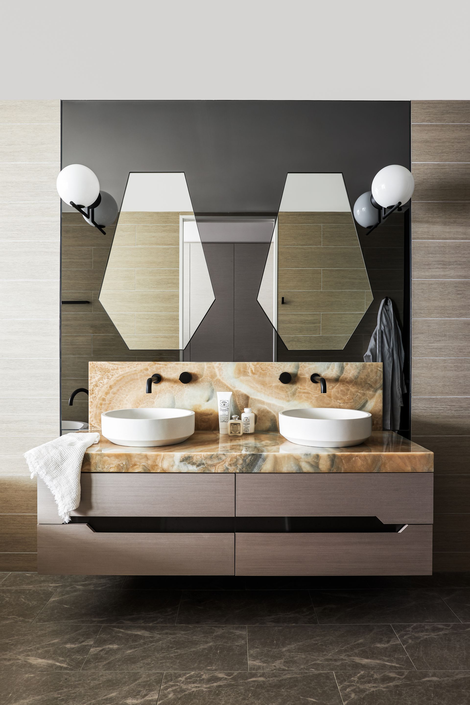 - 3 full bathrooms with premium stone and matte black fixtures throughout