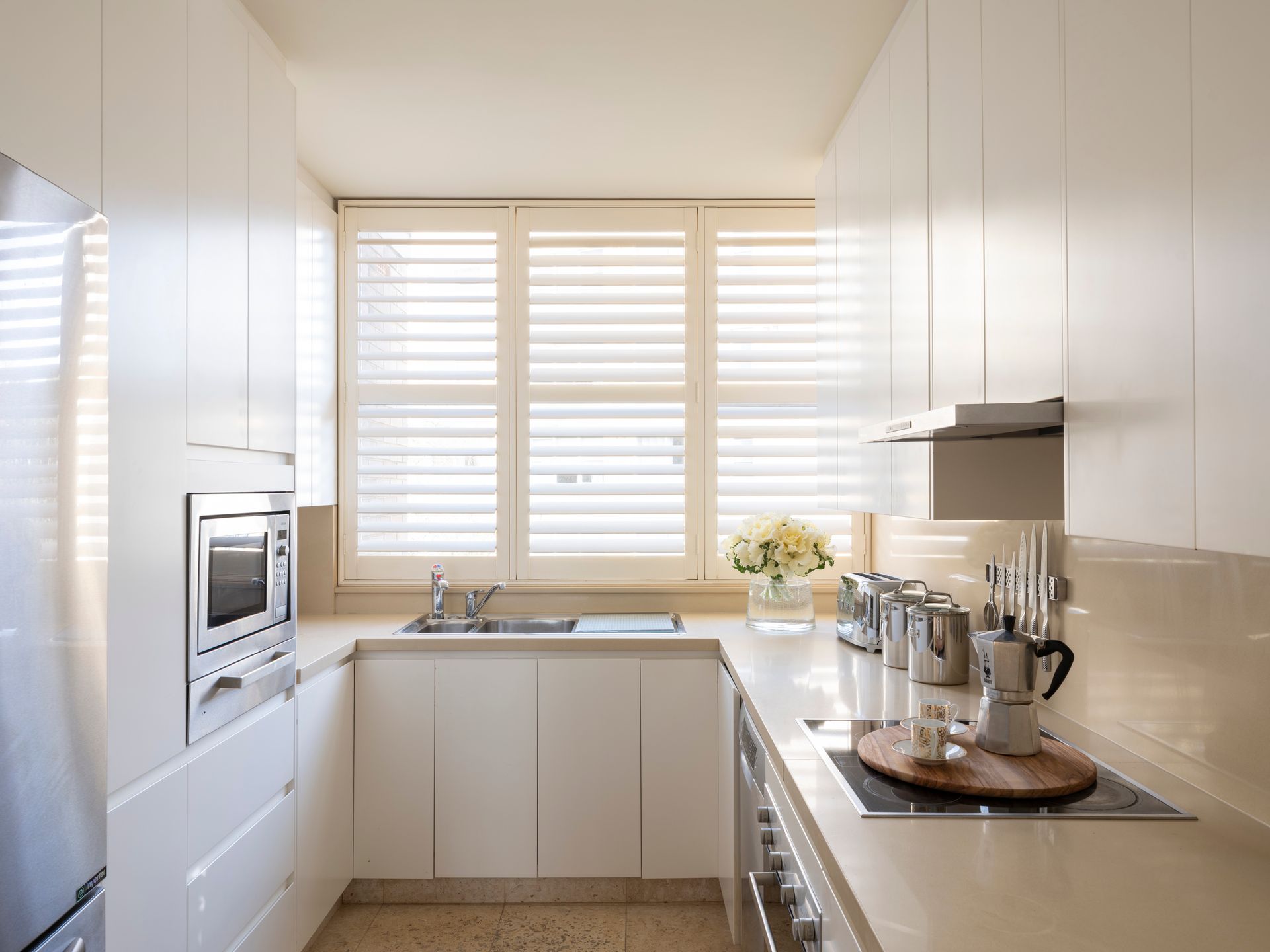 The kitchen blends into the living area, white cabinetry offers plenty of storage, while modern appliances including electric cooktop, oven, microwave, dishwasher and full size fridge handle everything from lazy breakfasts to proper dinner spreads. Set the dining table with the harbour as your backdrop and suddenly every meal feels a bit special, even if it's just takeaway and a bottle of wine.