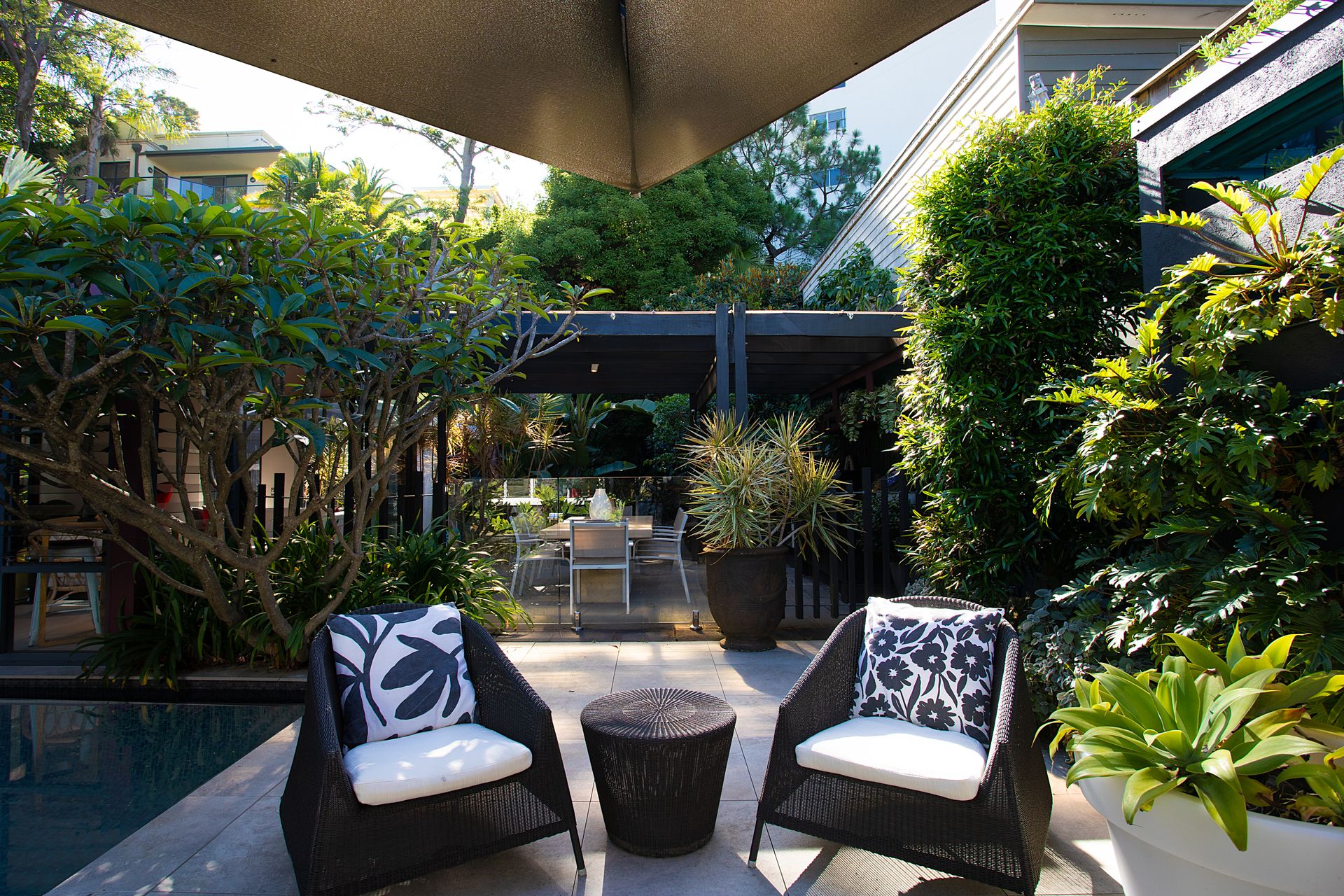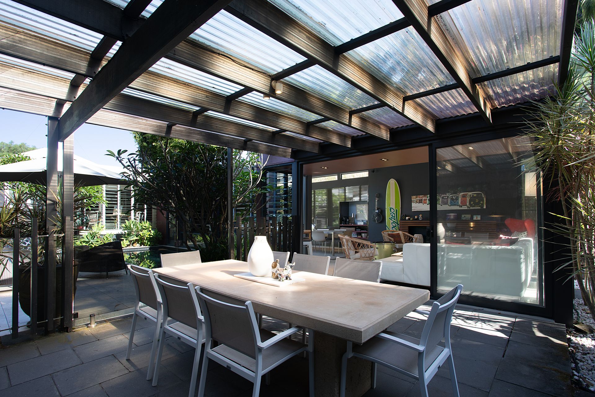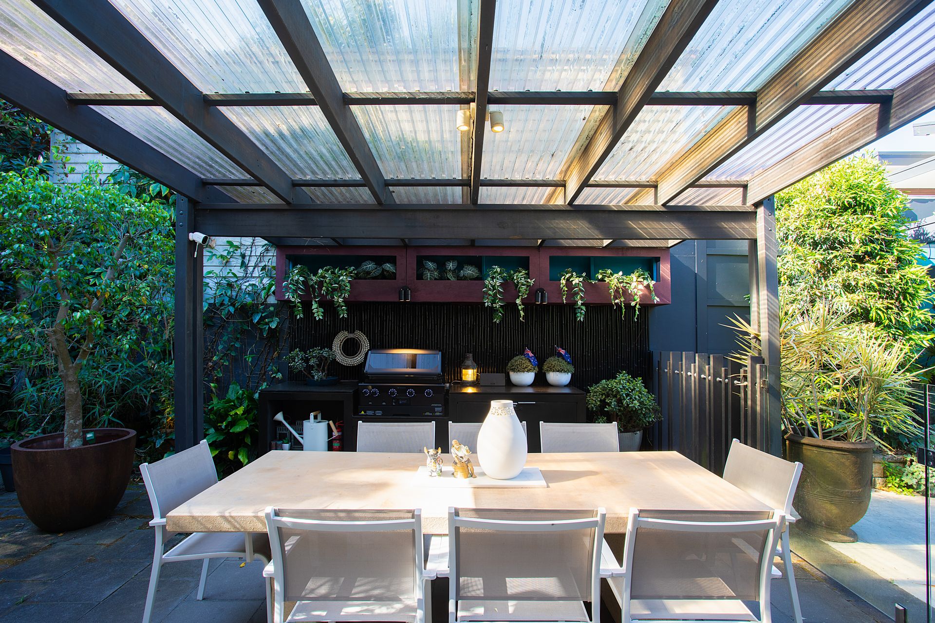 - Covered alfresco dining zone with BBQ