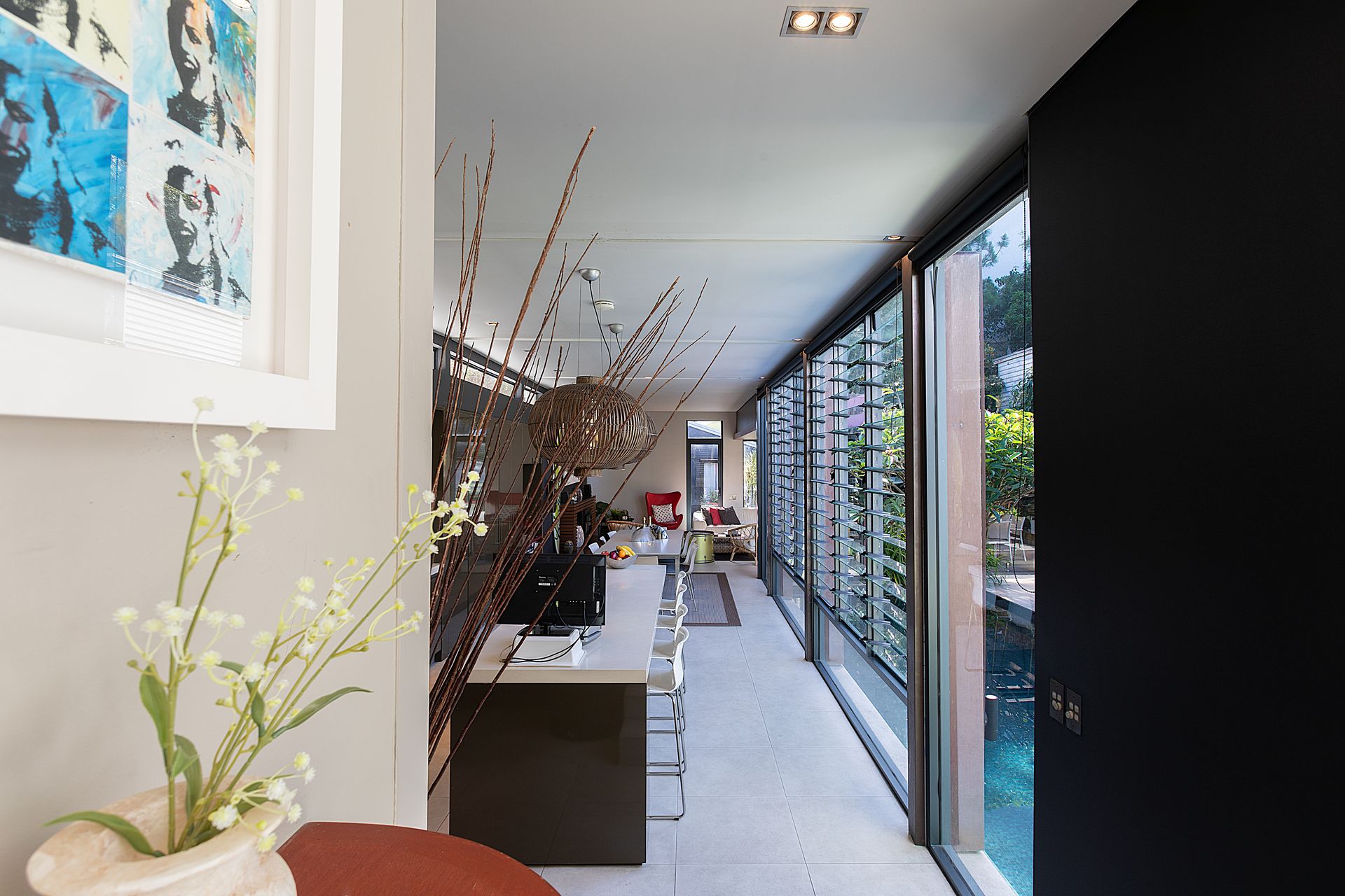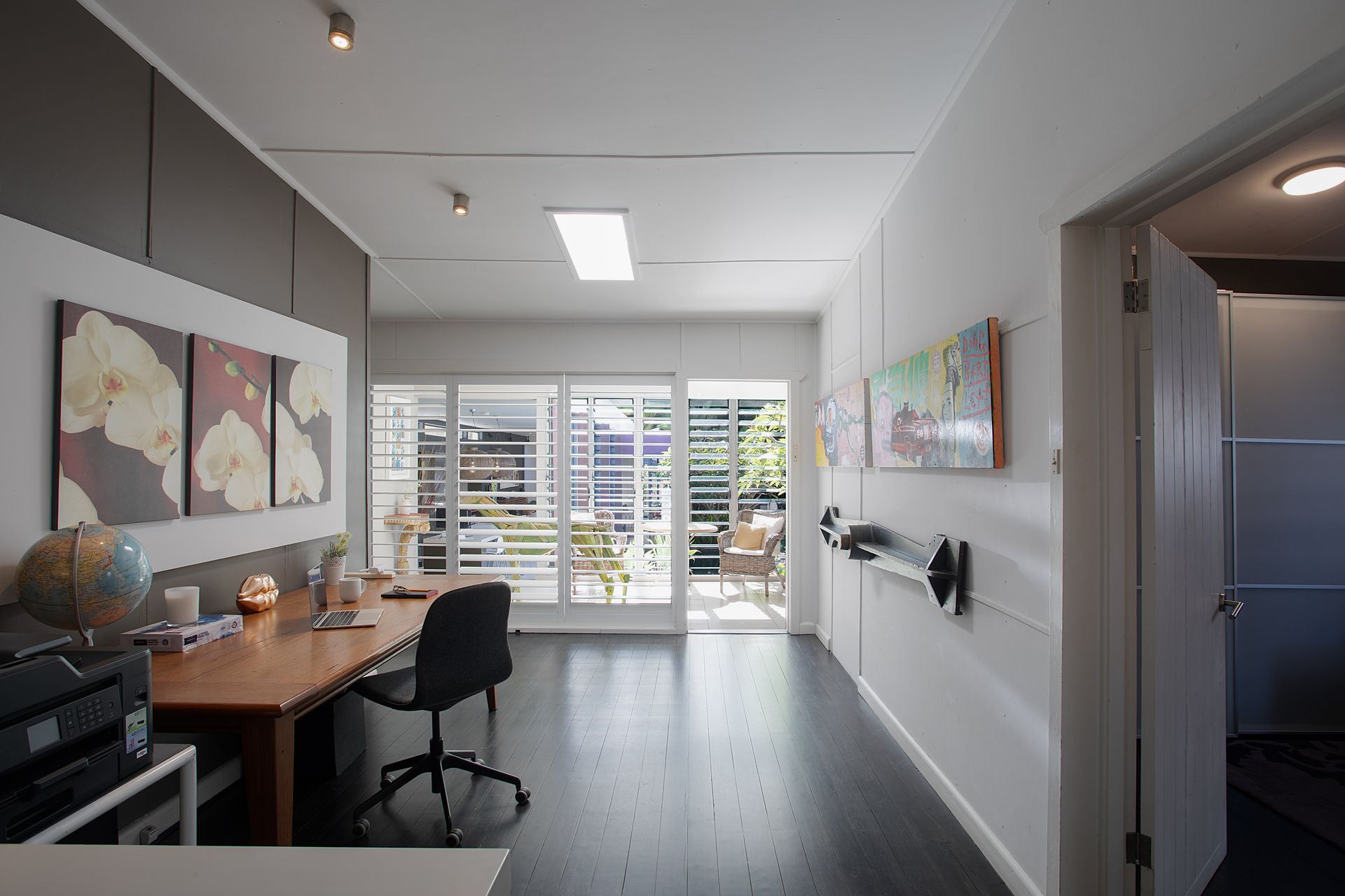 Throughout the home, personality and warmth shine through in curated décor and artwork, from the vibrant kitchen splash back to the serene orchid prints in the study. Secure driveway parking for two cars adds convenience.