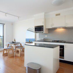 The heart of this home is a bright and airy open-plan living space. A comfortable large corner sofa completes the room, which opens onto your private balcony, via floor-to-ceiling doors. On your balcony, you can relax in the sun loungers, gazing over the crystal waters of Clovelly beach, with a cocktail or a book. There is also a gas barbecue, perfect for dining al fresco.
