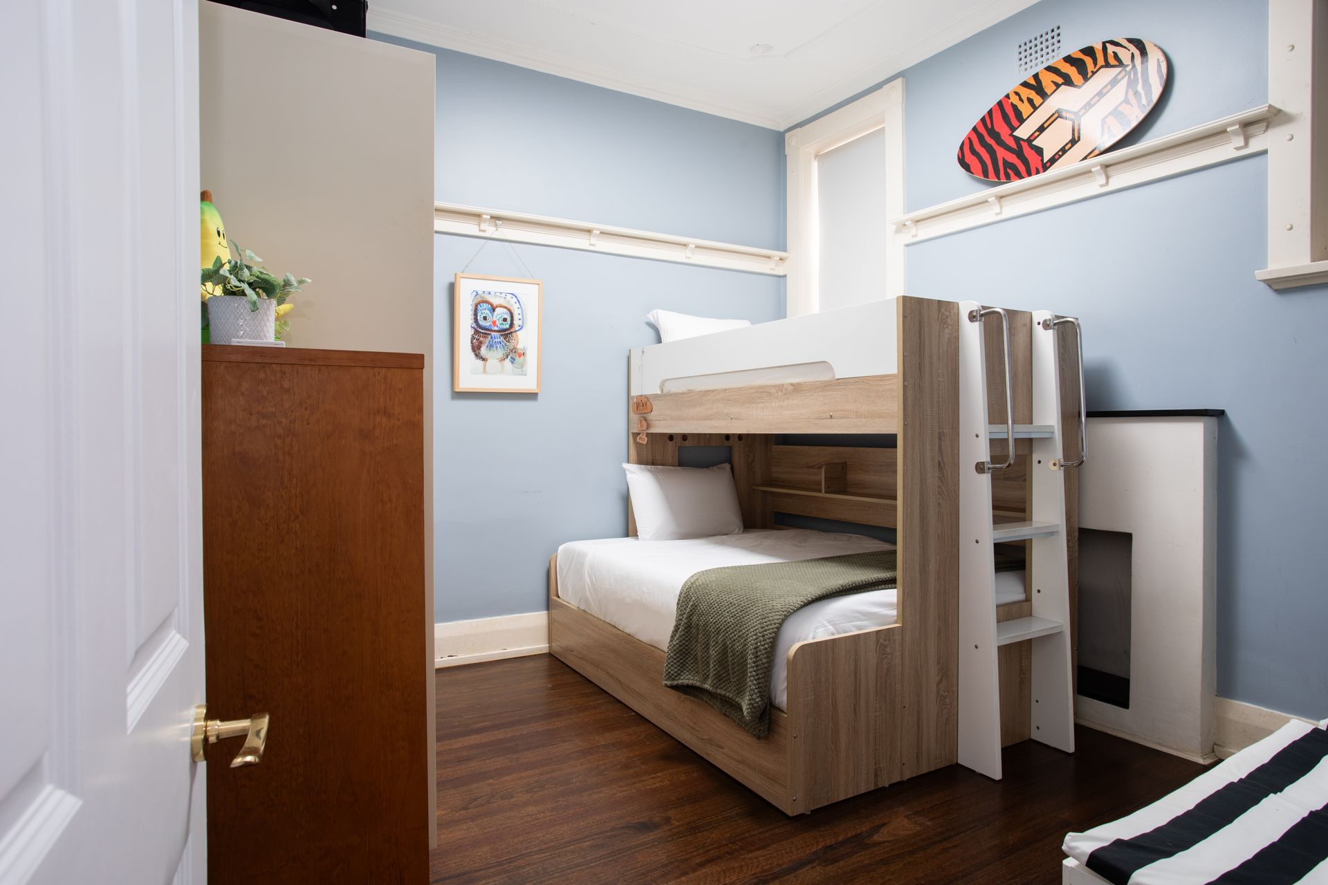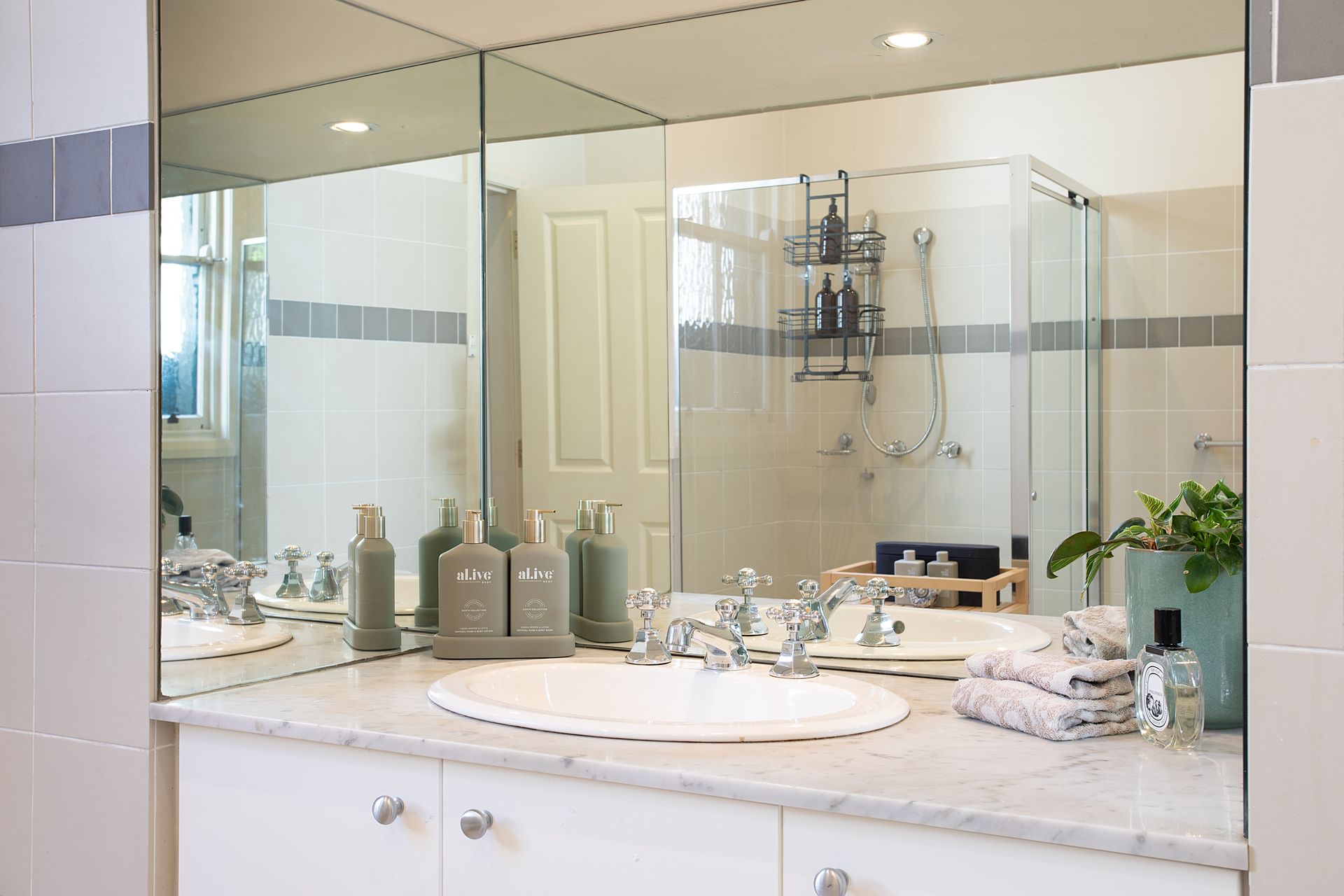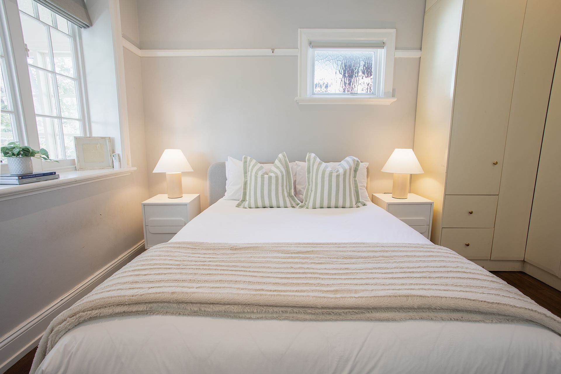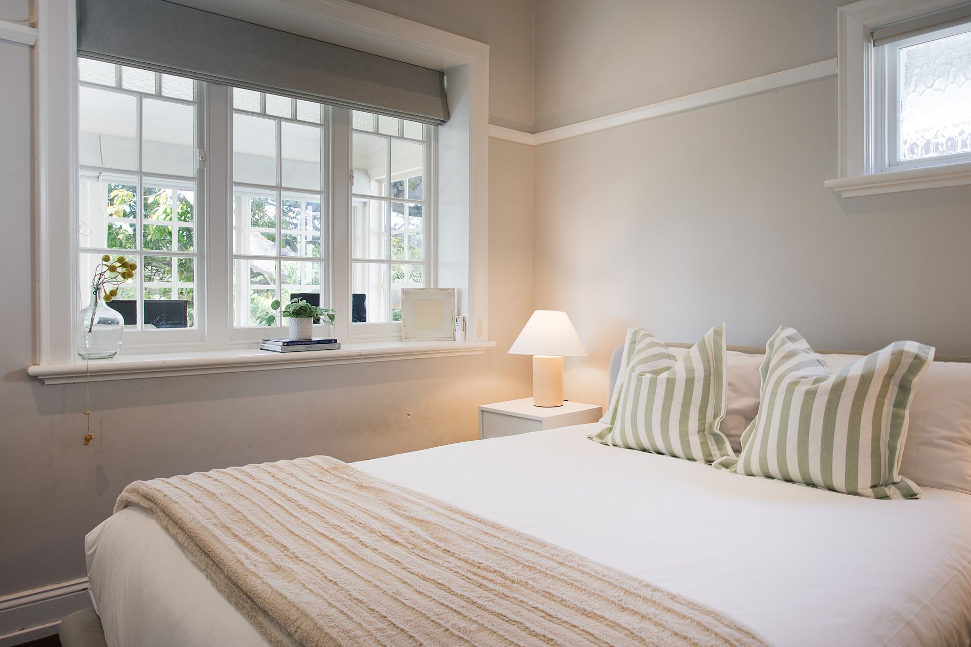 Four bedrooms provide peaceful sanctuaries across both levels, each space crafted for restful comfort. The first floor master suite features a king bed with quality linens and private ensuite, creating a secluded retreat with morning light. Adjacent, the second bedroom offers a queen bed, while the third provides flexible sleeping with a bunk combining single and double beds, perfect for children or guests. The ground floor welcomes overflow visitors with a sofa bed in an intimate fourth bedroom. Each space maintains calm and character, with blackout capabilities ensuring undisturbed rest after days exploring the eastern suburbs.