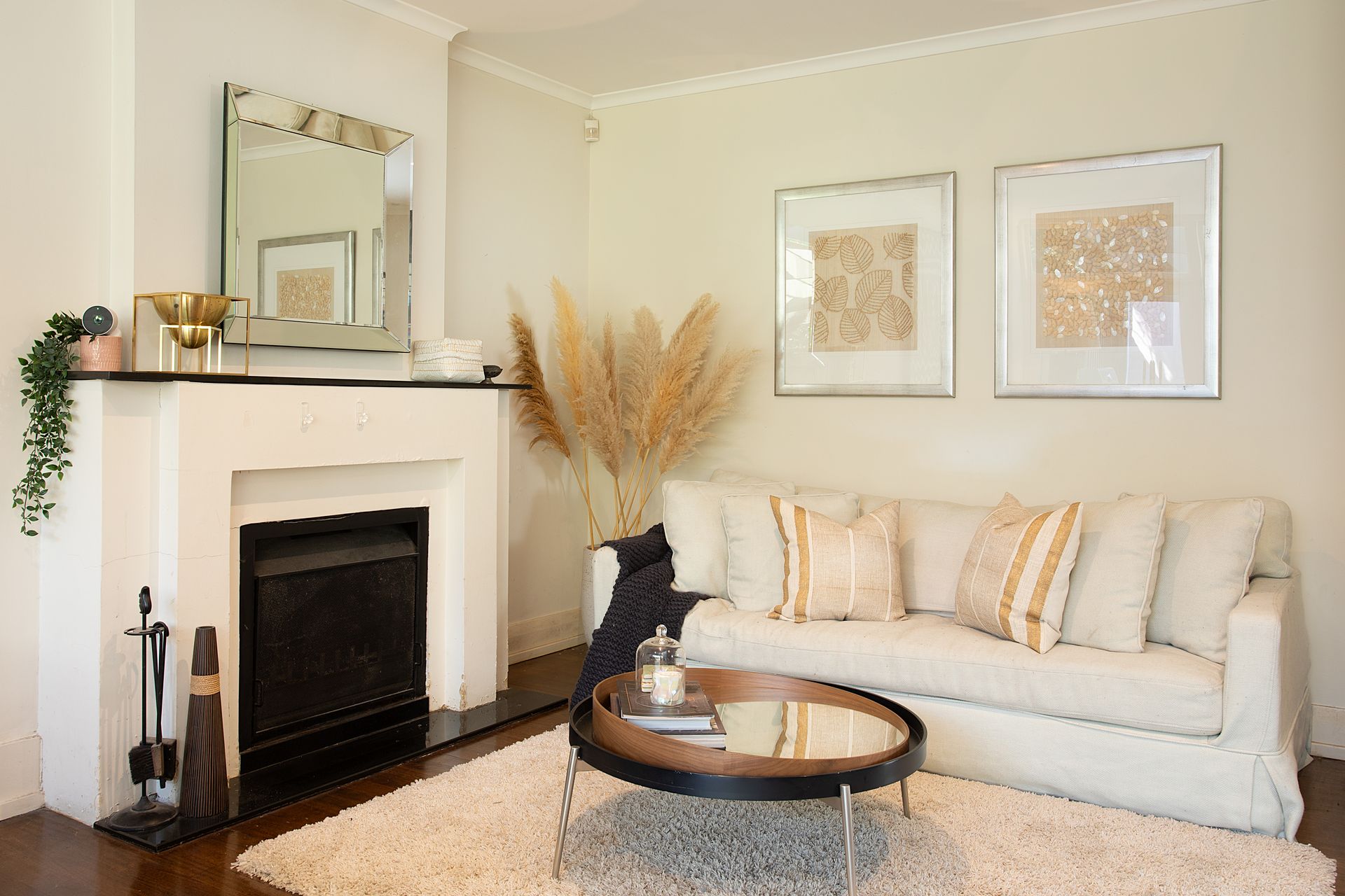 Two distinct living spaces span both levels, creating natural zones for family life. The ground floor offers an intimate retreat with a lounge area and separate room with a sofa bed, ideal for guests or quiet evenings, while the first floor opens into dual living areas that flow seamlessly together. Original fireplaces anchor each space with warmth and character, natural light pours through windows throughout the day, creating bright and airy rooms perfect for both lively family meals and relaxed weekends. The multiple living zones provide flexibility for households of all ages.
