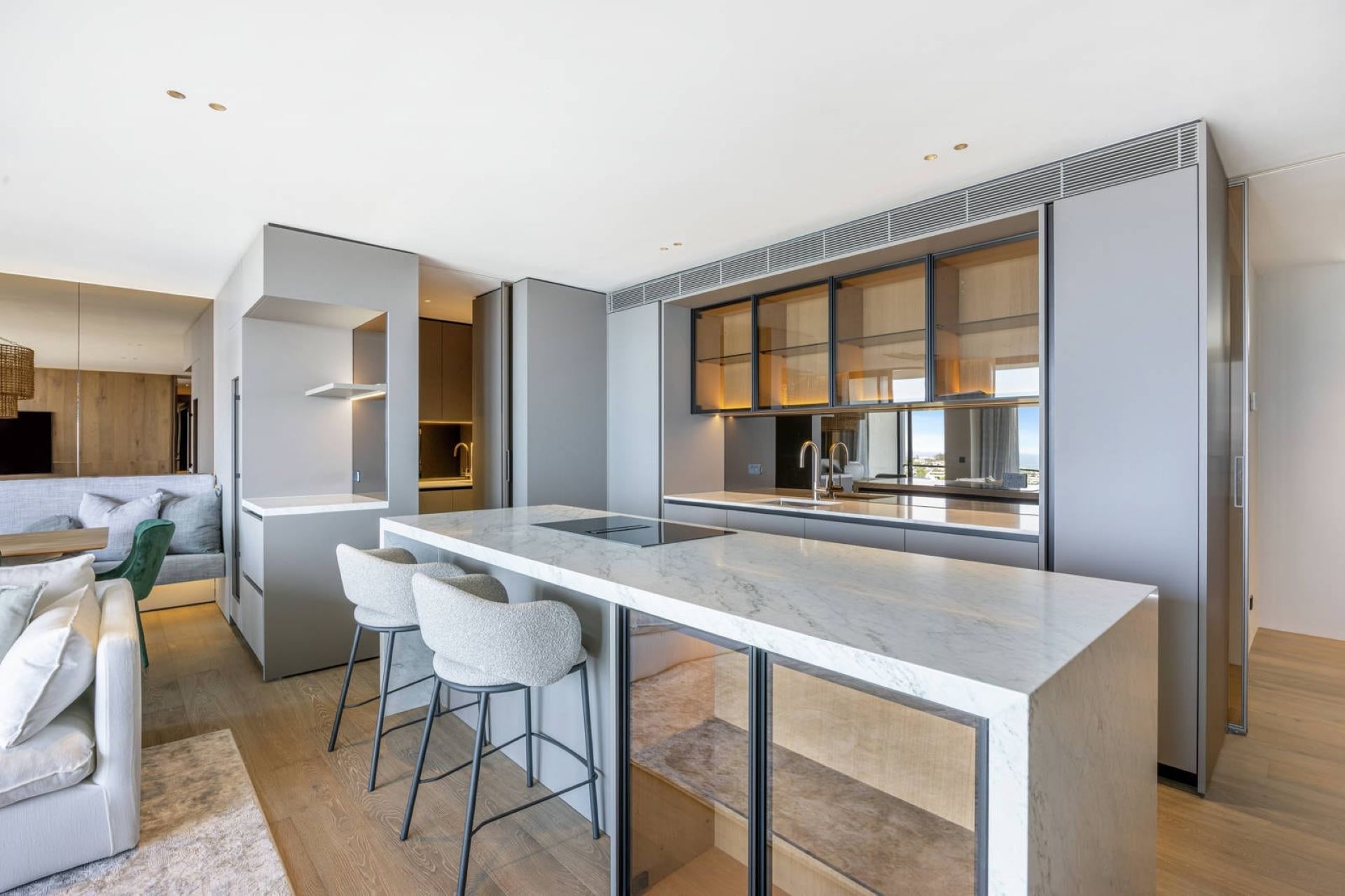 Three marble bathrooms on offer, and a steam showers in the master ensuite that create spa moments at home, while a Sunlighten infrared sauna offers deeper restoration. A clothes air dryer handles practical needs while two secure car spaces provide convenient parking.