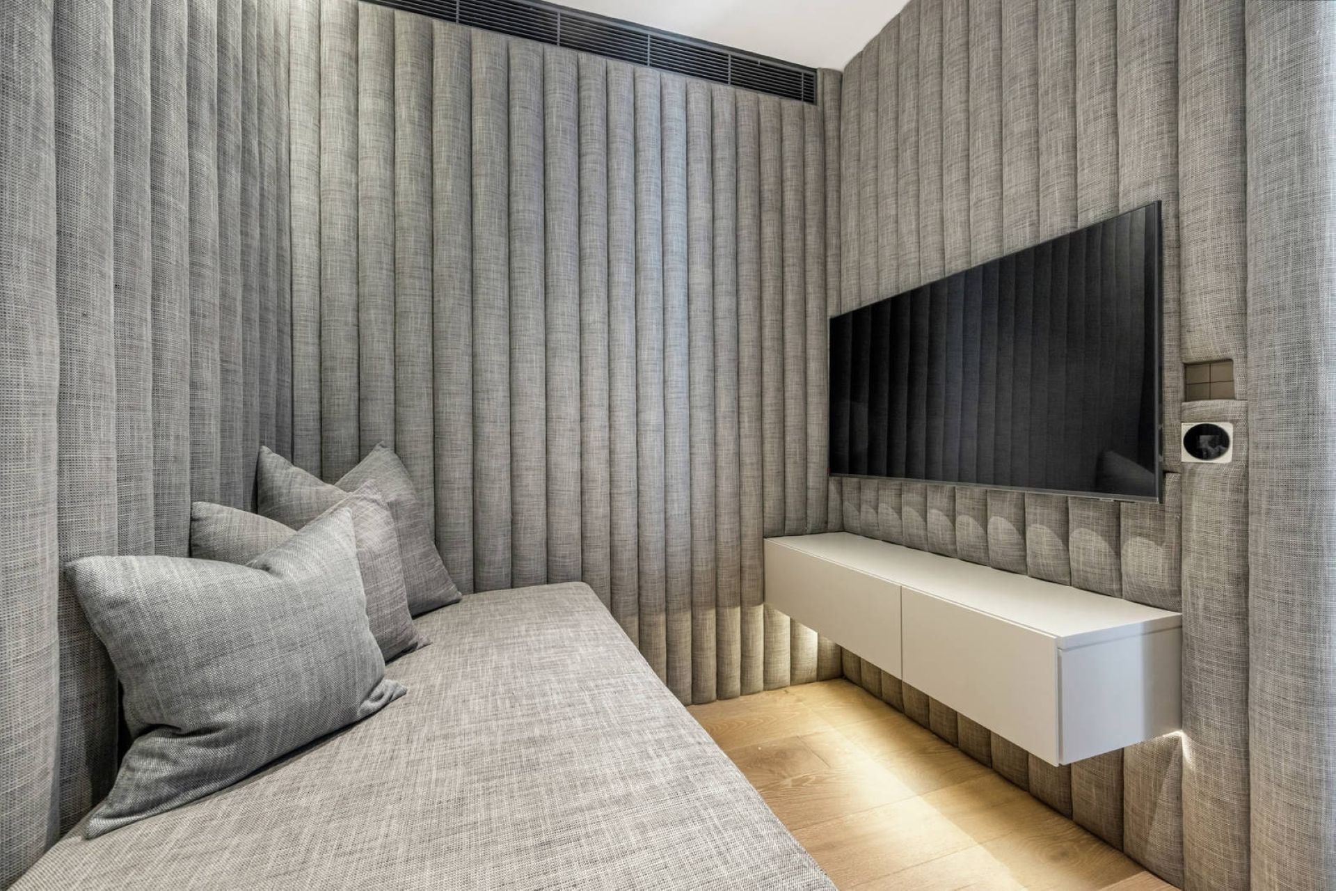 - Soundproofed home theatre room with custom acoustic panelling