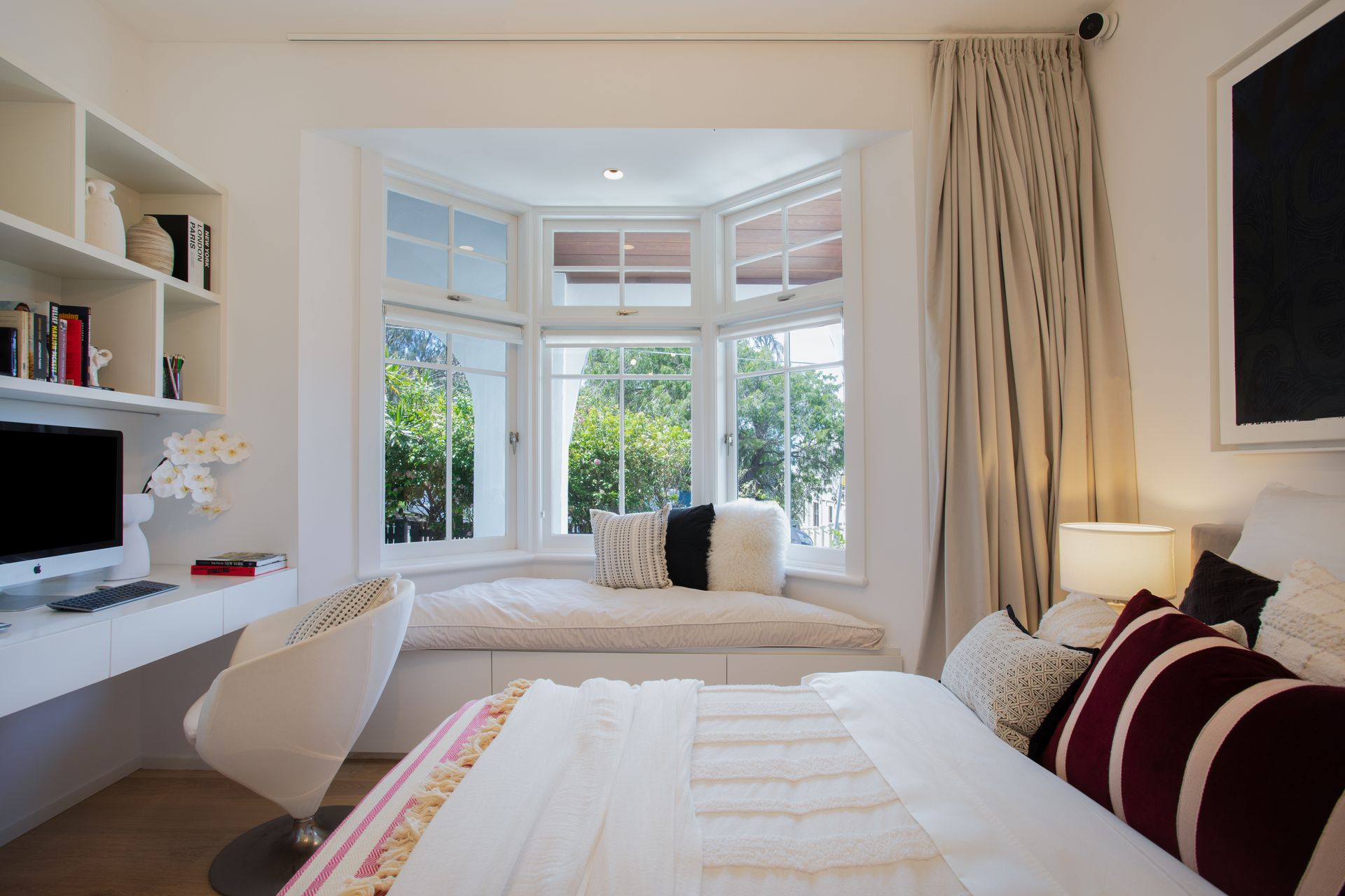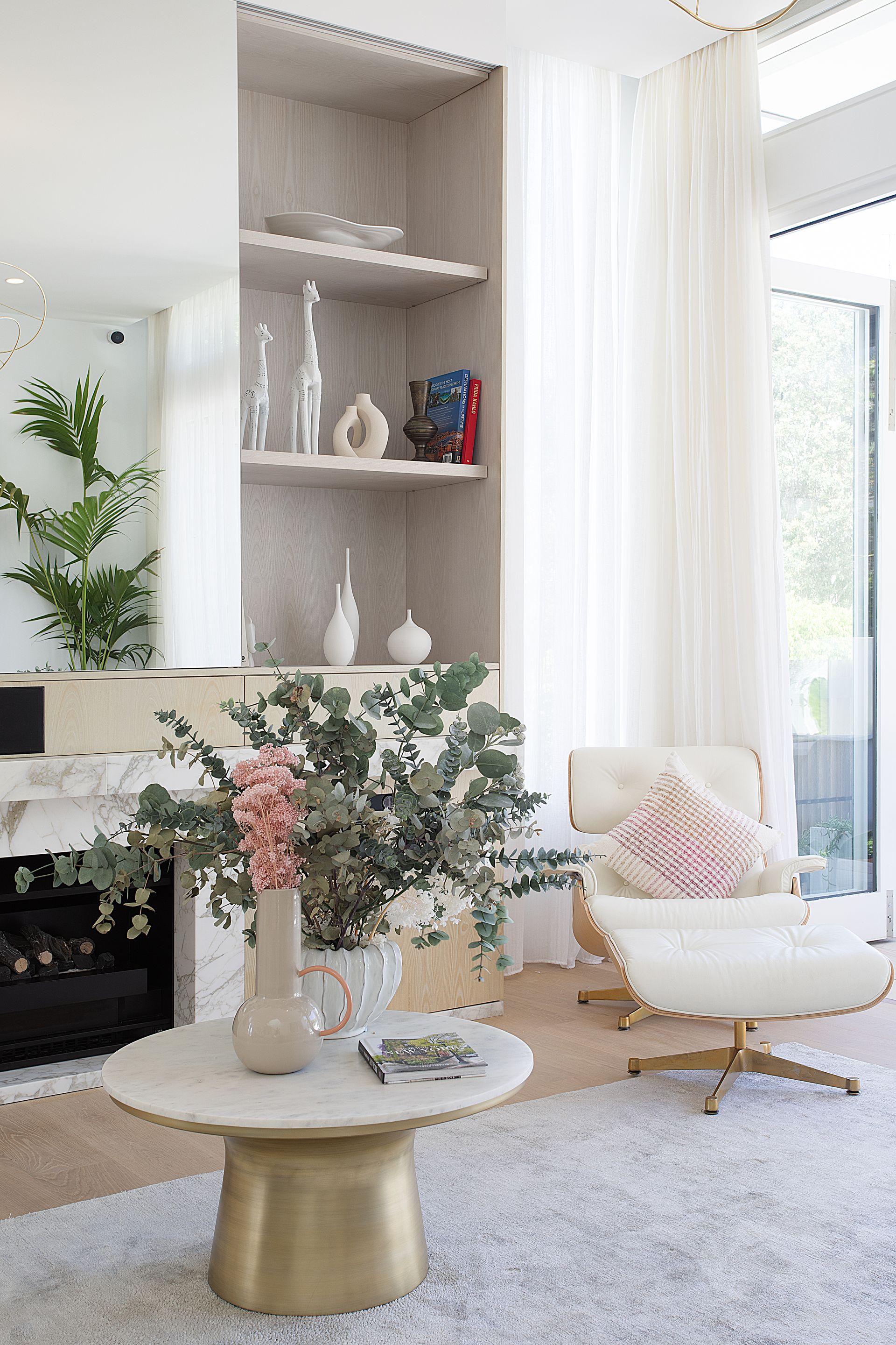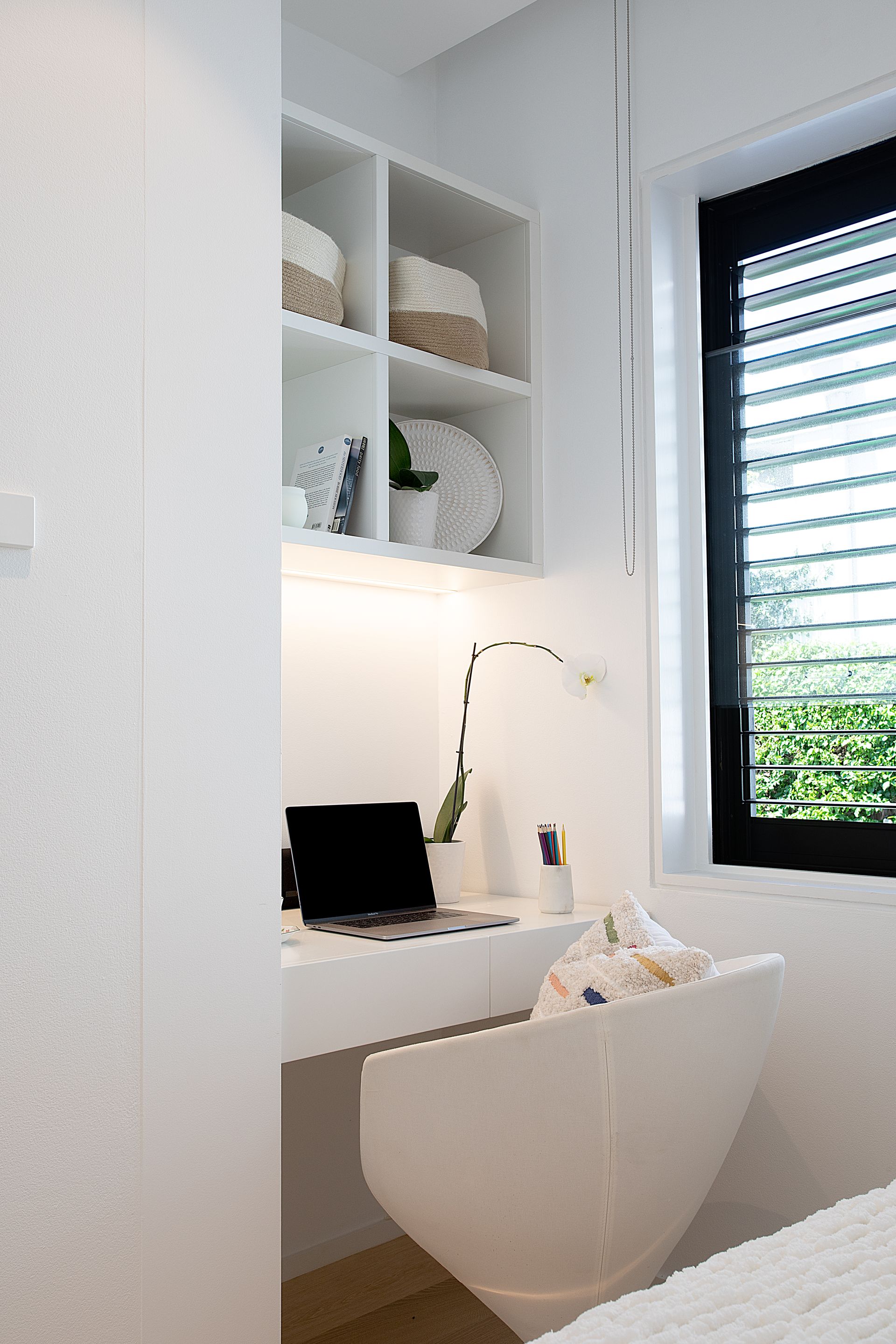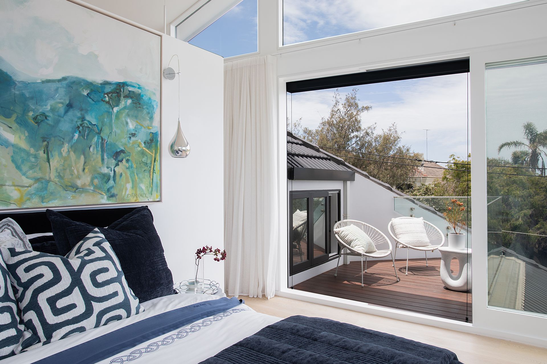The ground floor unfolds as a continuous living canvas, where light floods through vast windows and dances across solid marble surfaces throughout the day. A Heatmaster gas fireplace anchors the main living space, framed by bespoke architectural lighting that creates warmth long into the evening. The open plan design flows effortlessly to a sandstone terrace and landscaped garden, blurring the line between inside and out. Upstairs, a second living retreat offers soundproofed privacy, complete with television and integrated office space, perfect for those seeking quiet corners away from the main gathering areas. Custom daybeds nestle into alcoves throughout, inviting you to pause and absorb those ever-changing ocean views.