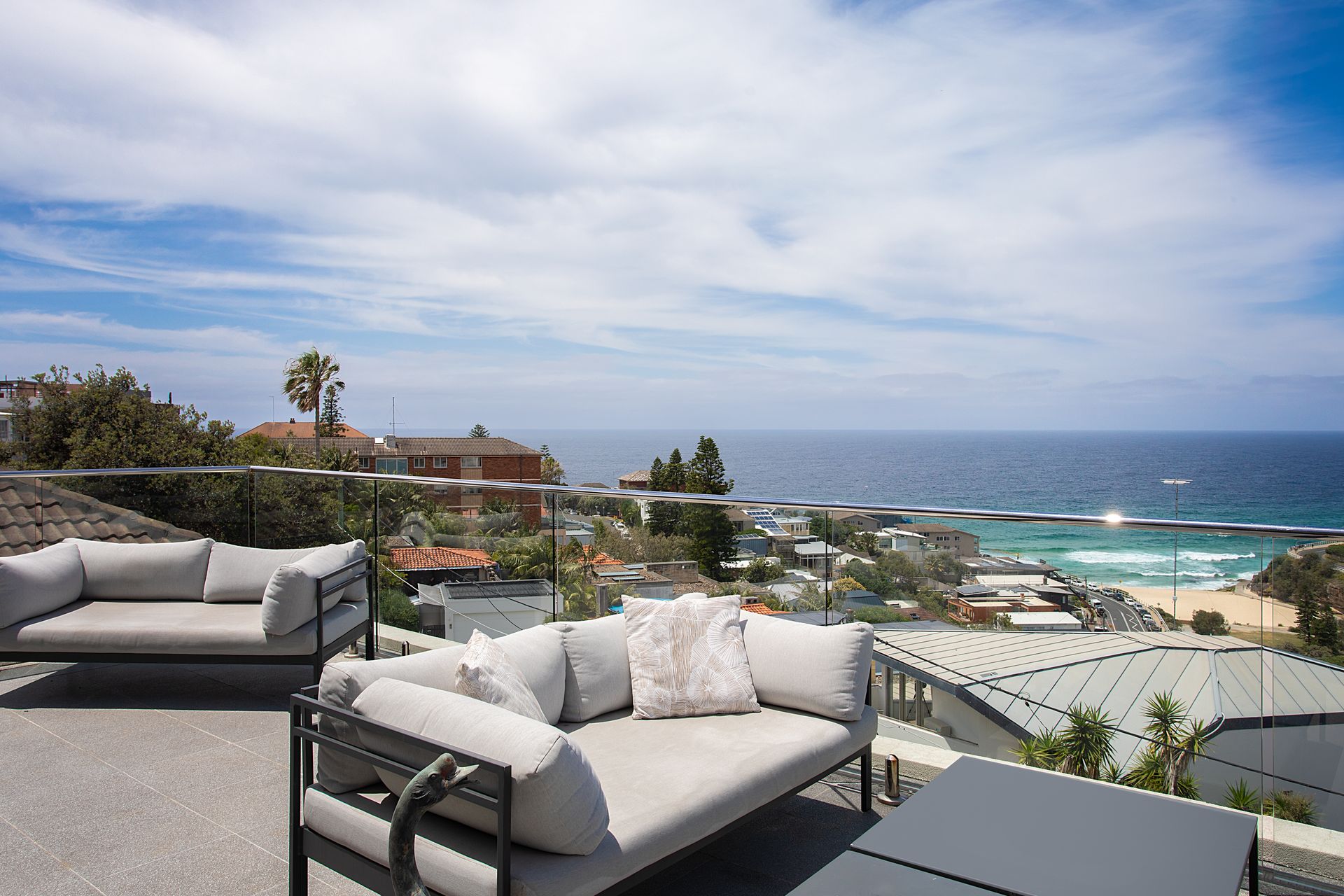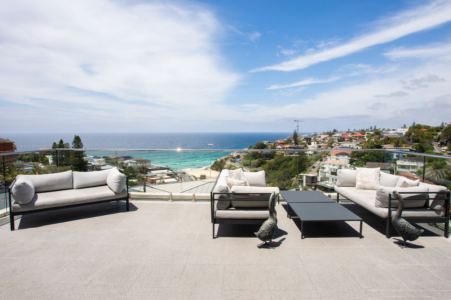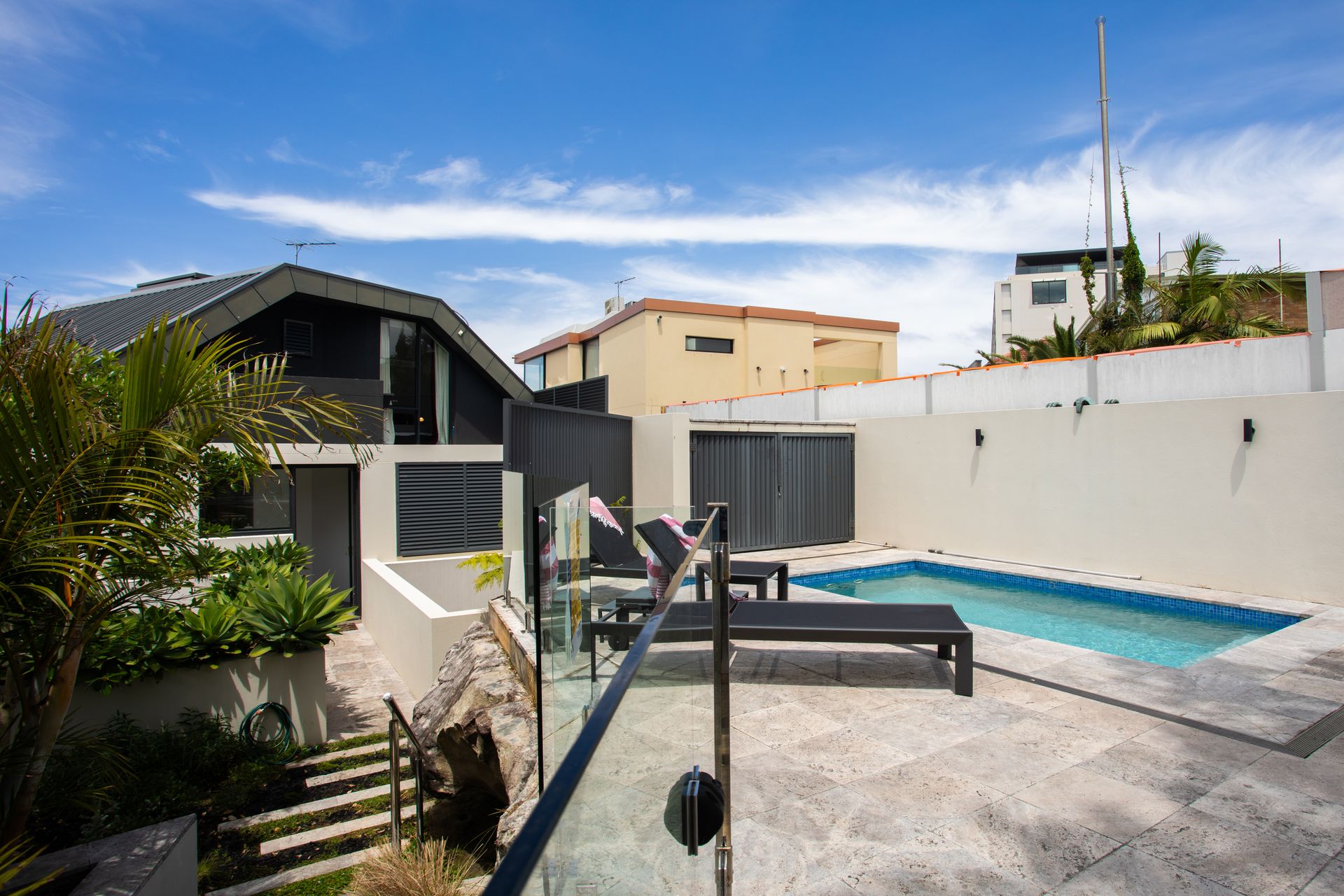 Floor to ceiling glass frames uninterrupted Pacific panoramas, flooding open plan living spaces with natural light. The interior flows seamlessly onto a private terrace where a built-in BBQ and firepit create the perfect setting for alfresco dining and evening gatherings under the stars. Beyond the terrace, the private rear garden bathed in northerly sunshine and complete with a plunge pool creating an entertainer's paradise and a perfect spot to relax after a day at the beach.