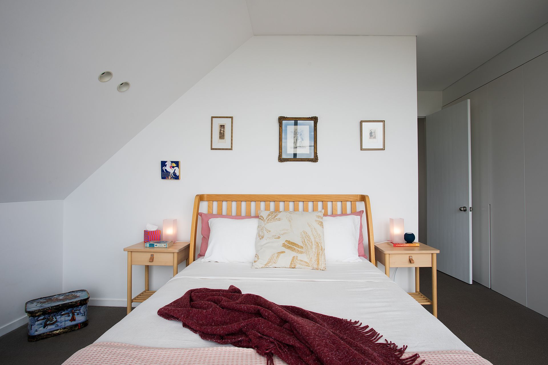The master bedroom wakes to ocean views that stretch to the horizon. Direct terrace access means morning coffee overlooking the Pacific, while the ensuite bathroom provides a private retreat. Two additional bedrooms accommodate queen and double beds, offering flexible arrangements for family or guests. Natural light and coastal breezes define the sleeping spaces, with views that anchor you to the beachside location.