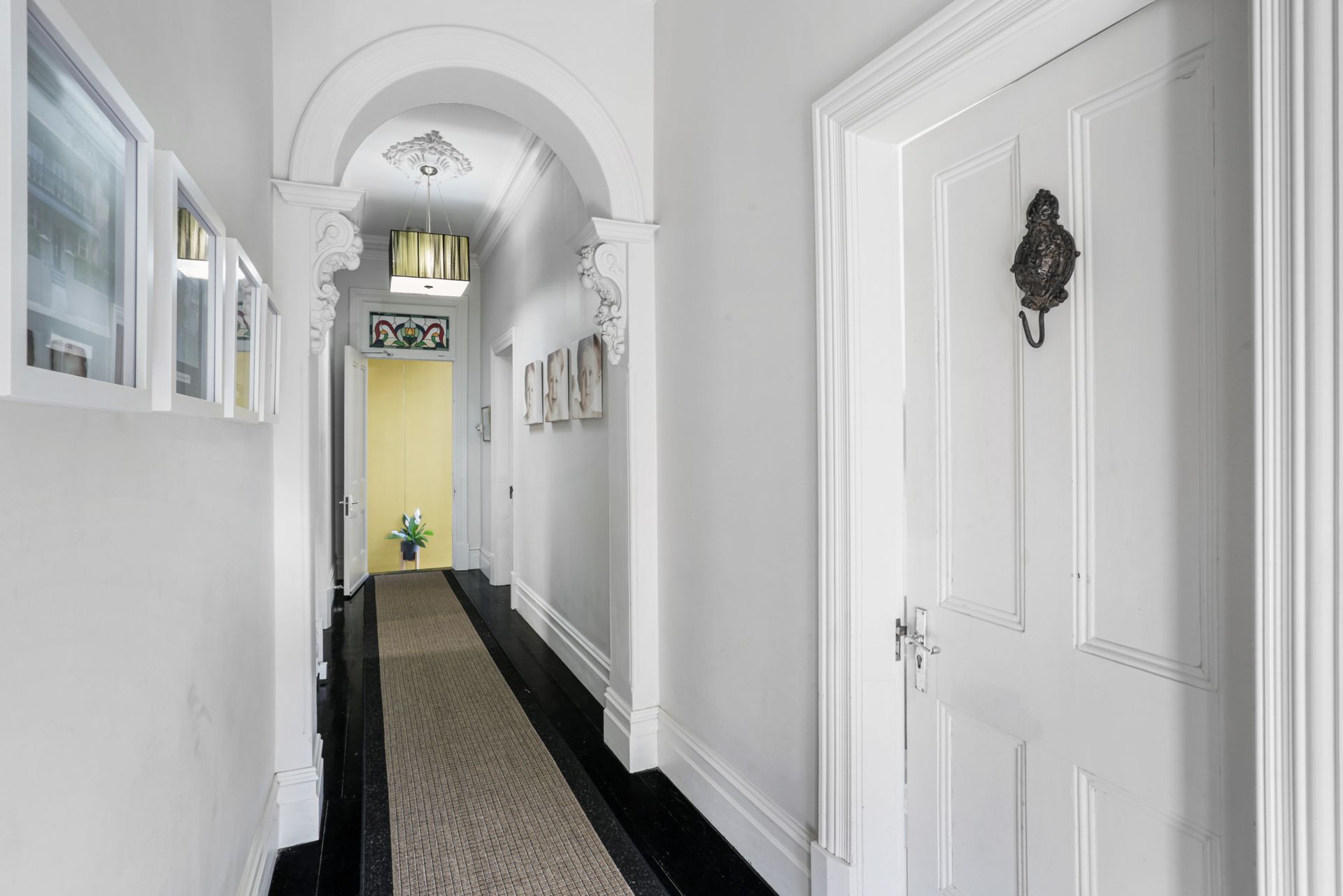 - Dark hardwood floorboards throughout with original period heritage features