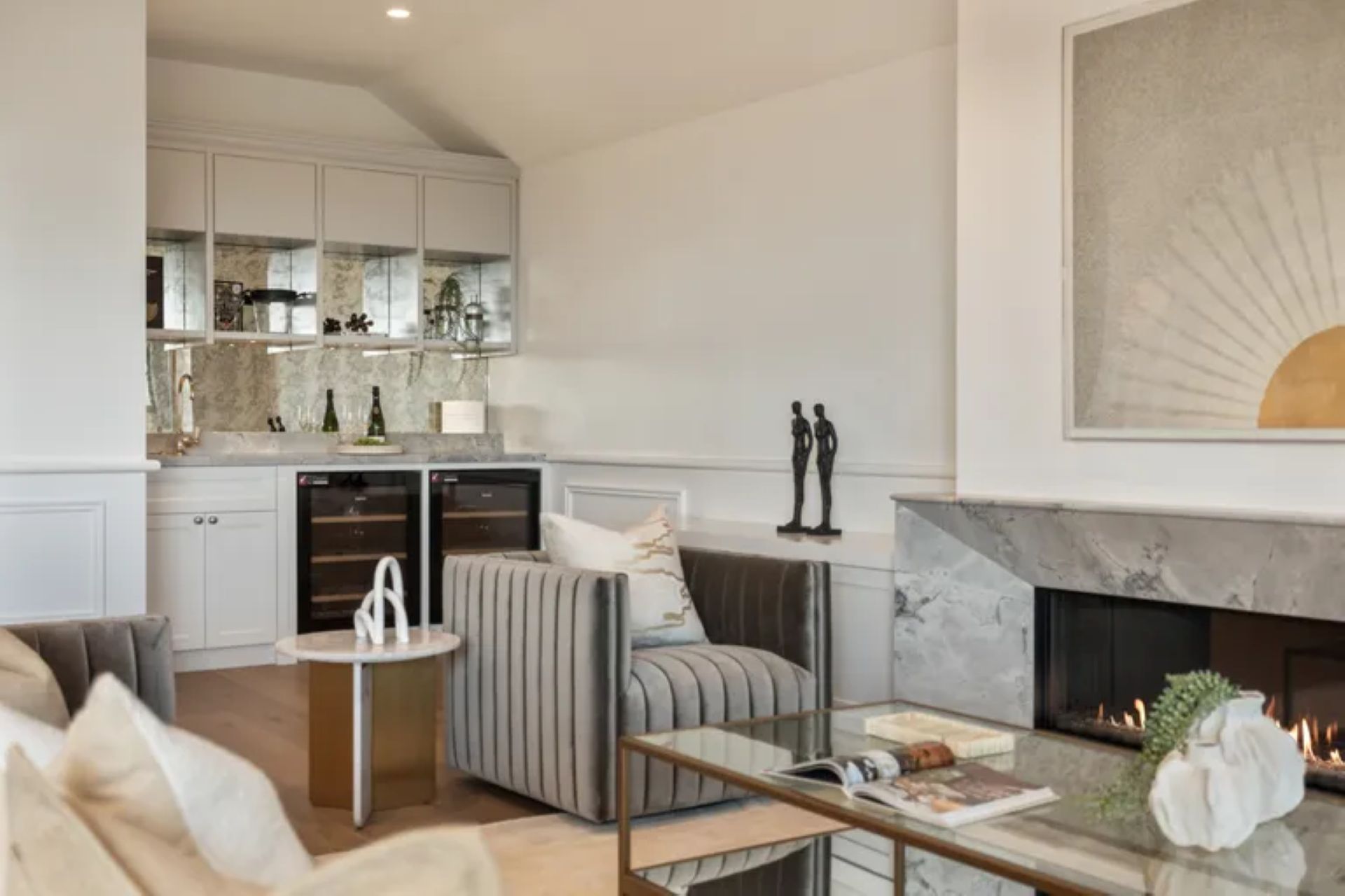 Step through the grand entry hall into soaring spaces defined by premium finishes and contemporary elegance. The heart of this residence flows effortlessly through expansive living spaces, where an open-plan kitchen takes centre stage with its sleek island bench, bar seating, dishwasher and oven. Adjacent lies a fully equipped butler’s kitchen, ensuring seamless entertaining on any scale. A cocktail bar area, complete with bar fridge, sets the stage for evening gatherings, while the formal dining space accommodates up to ten guests and multiple lounge areas, including a fireplace lounge and TV room, provides spaces for both intimate and grand occasions. One of the property’s two alfresco BBQ areas is located on the first entry level, offering a fully equipped space for outdoor dining and entertaining. Heading back into the main house, french doors cascade open onto another one of the sun-drenched terraces, revealing the sparkling swimming pool on the lower ground level surrounded by landscaped gardens and BBQ areas. A dedicated pool house with lounge, TV, gym equipment and bathroom completes the resort-style experience.