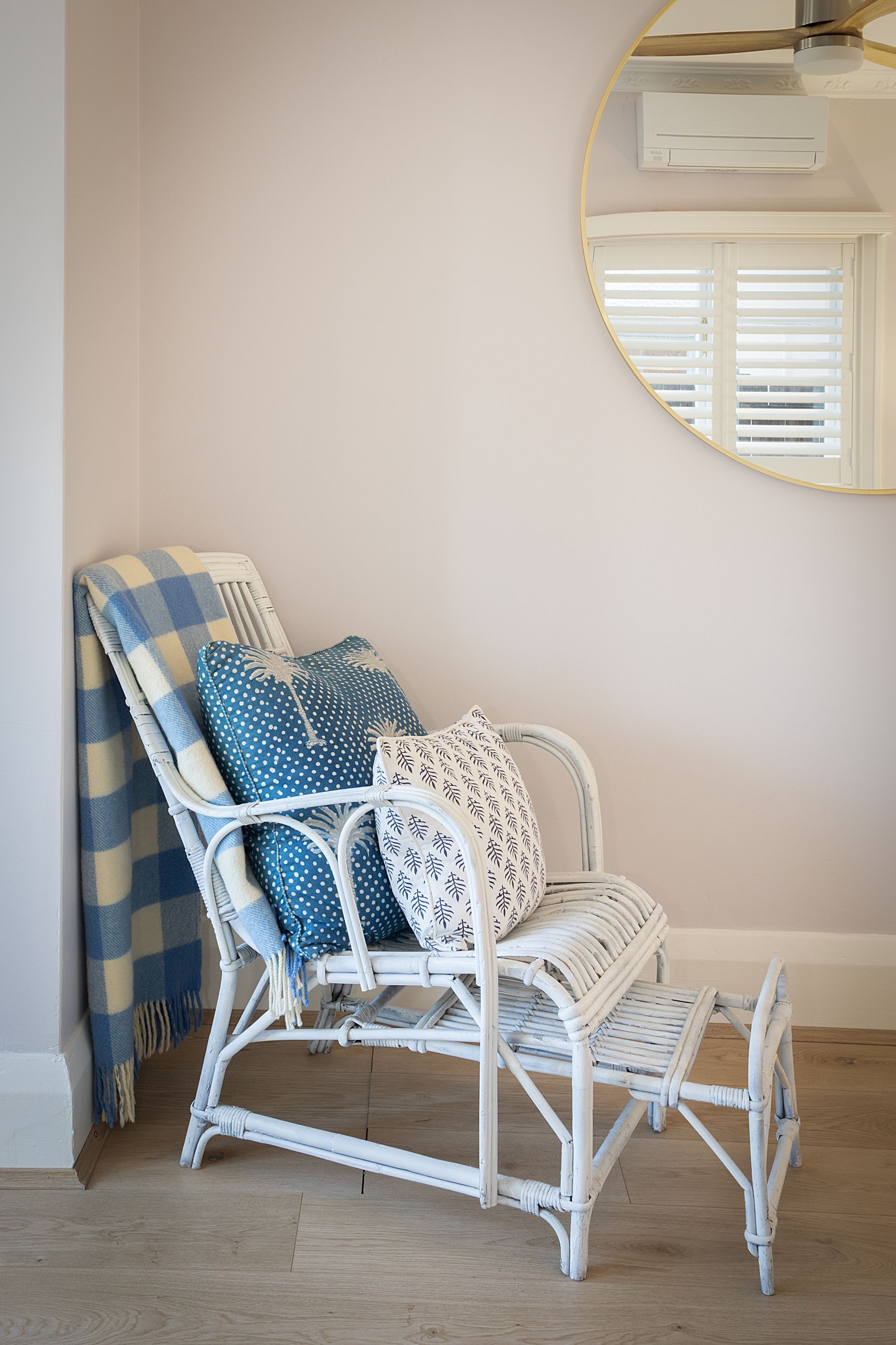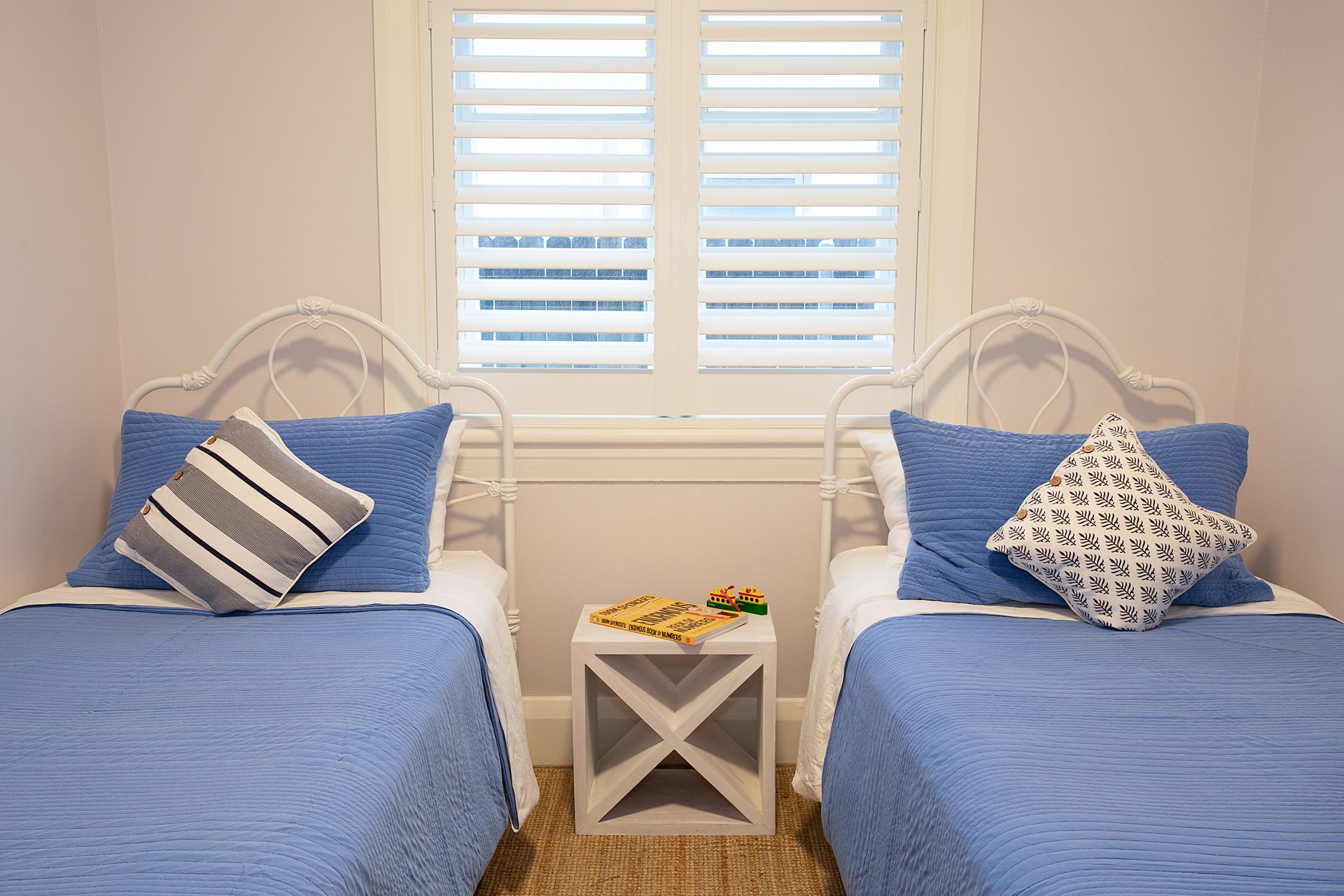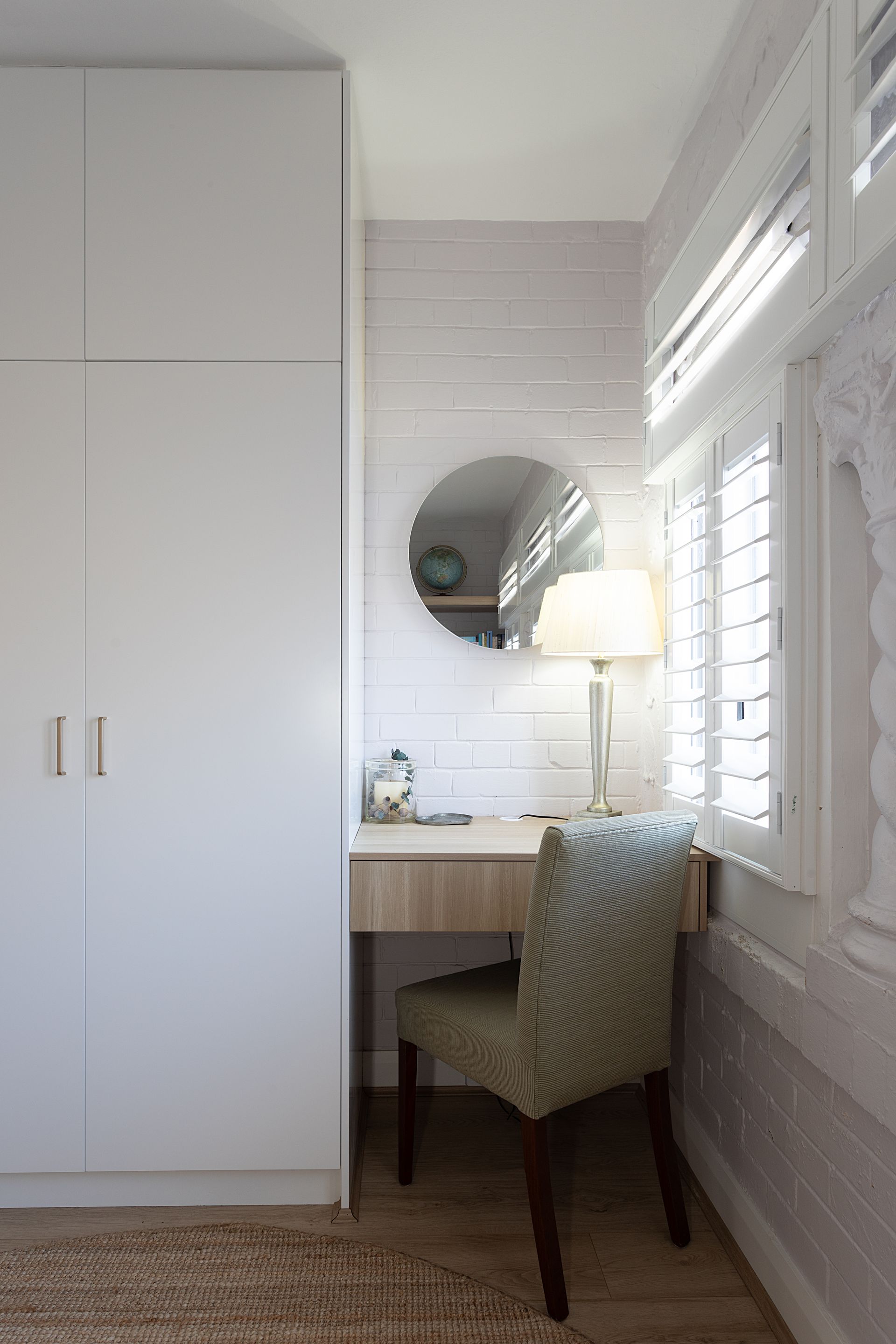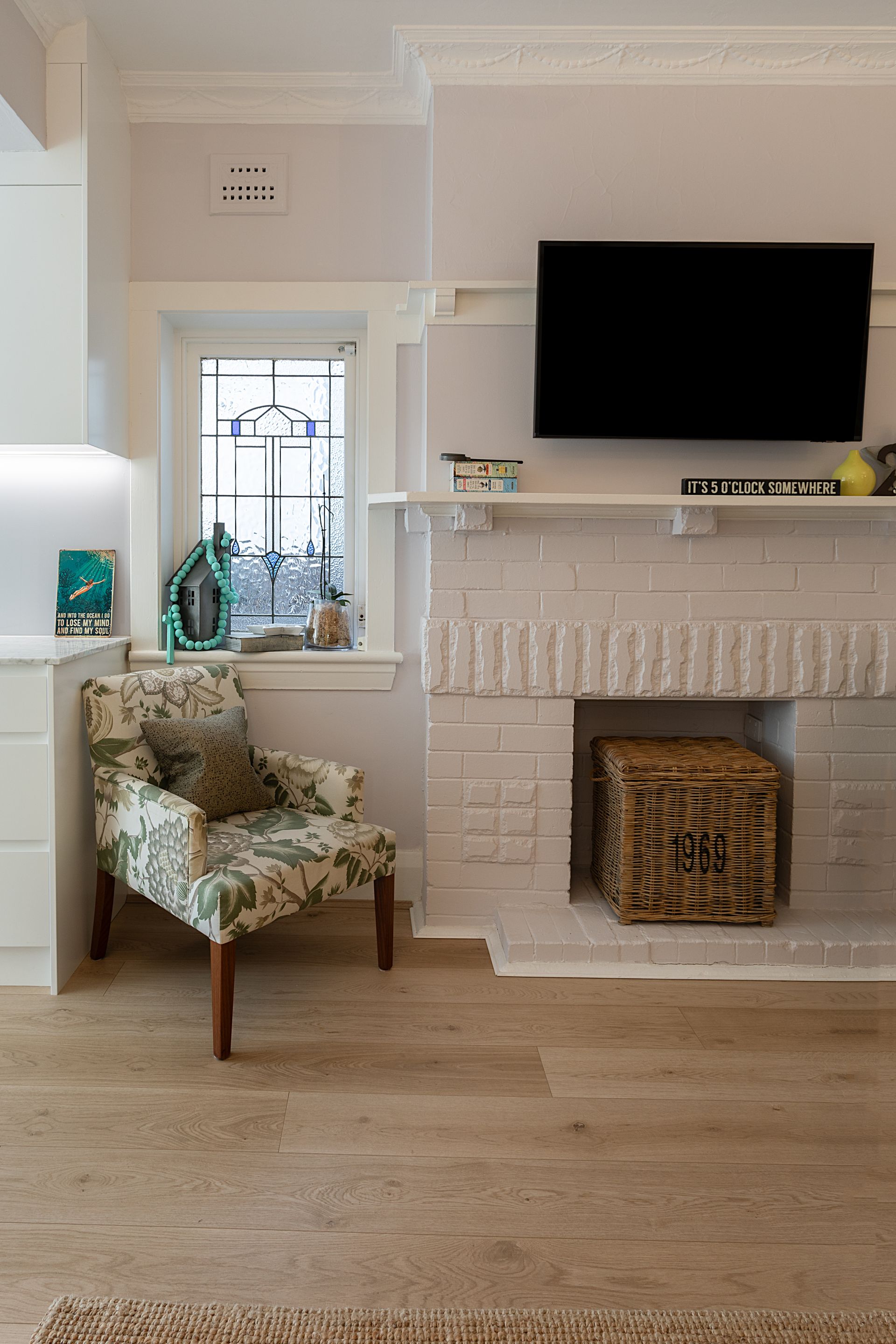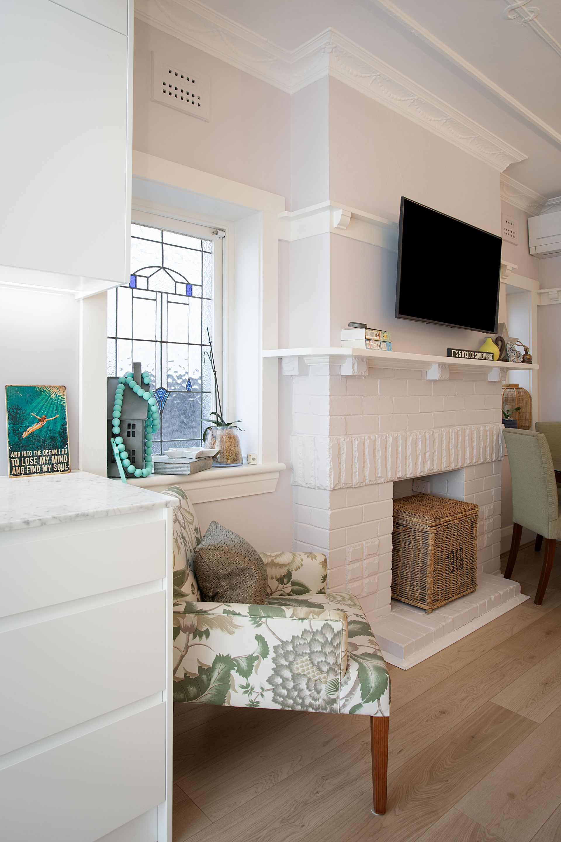 Step inside and watch the open plan living and dining space welcomes you with pale timber floors and white walls that amplify the natural light. Botanical print armchairs frame a glass topped coffee table, while a round dining table for four sits beneath a white brick fireplace feature. The modern kitchen flows seamlessly from this space, designed with white cabinetry, marble benchtops and quality appliances, perfect for everyday cooking sessions. When sleep calls, the first bedroom offers a serene retreat, with a queen bed dressed in white linens, while the second features two single beds, ideal for children or visitors. A contemporary bathroom services both rooms, while the dedicated workspace ensures you can stay productive. Split system air conditioning and heating keep the apartment comfortable year round and a washing machine elevates daily convenience.